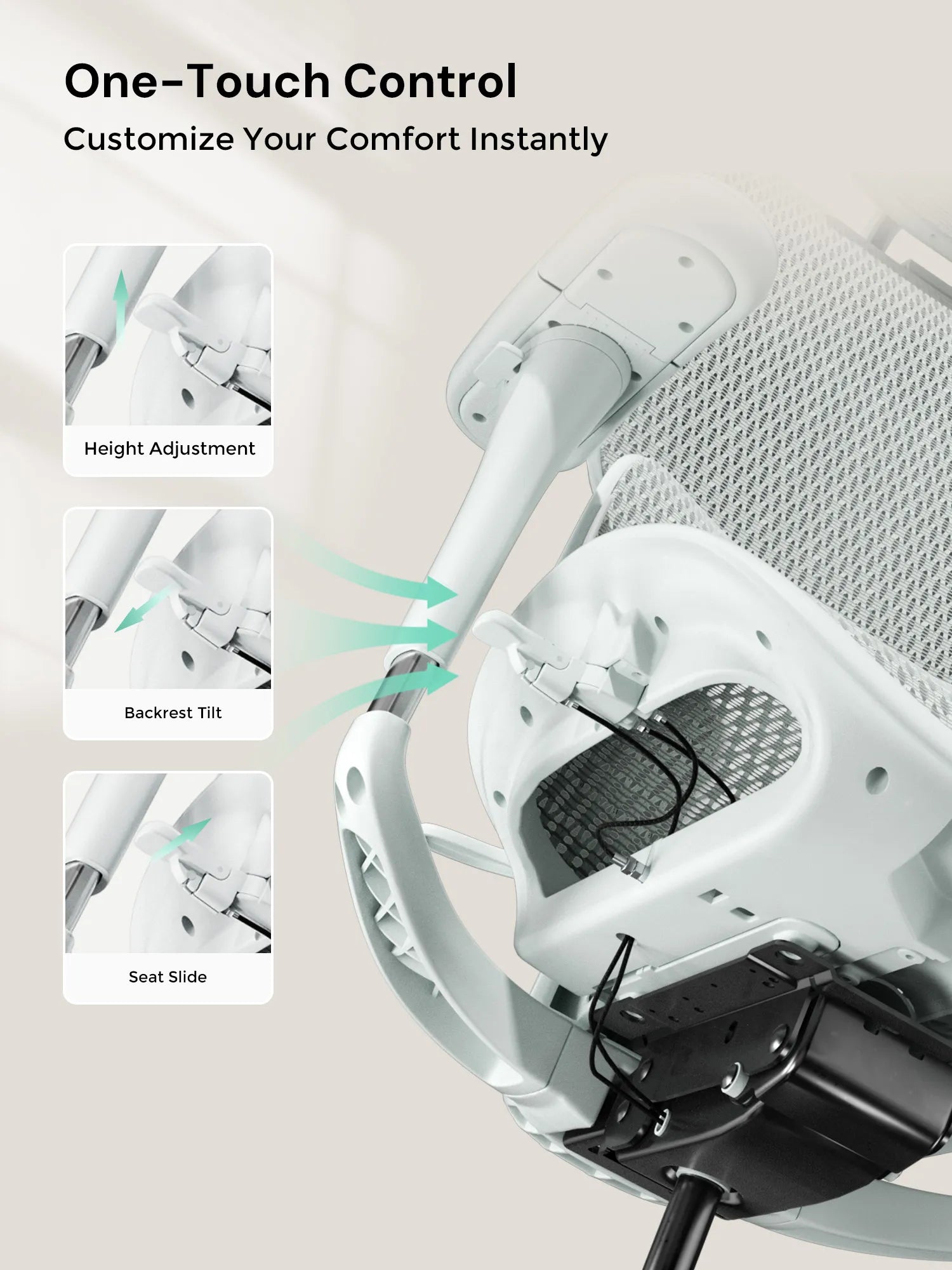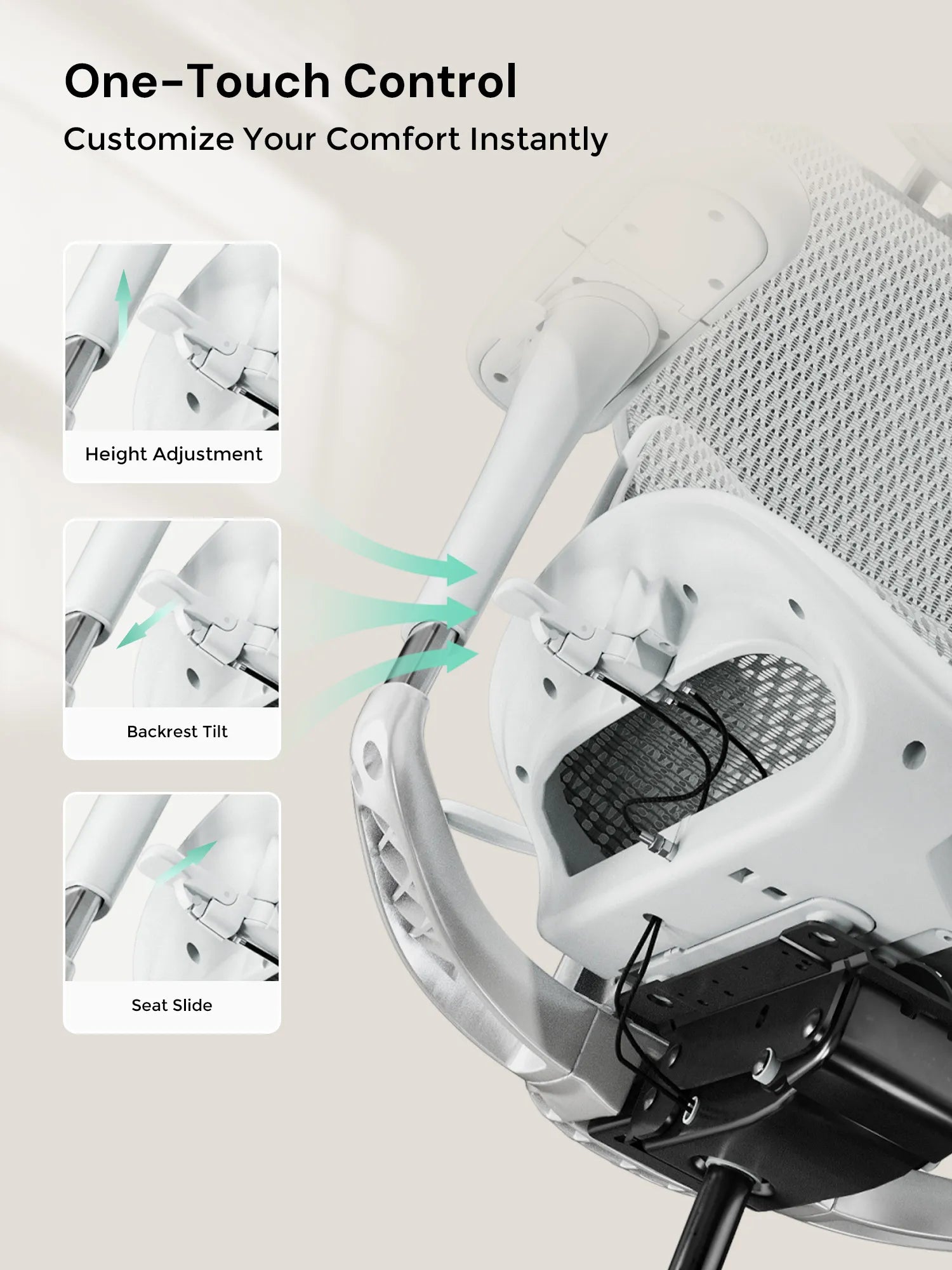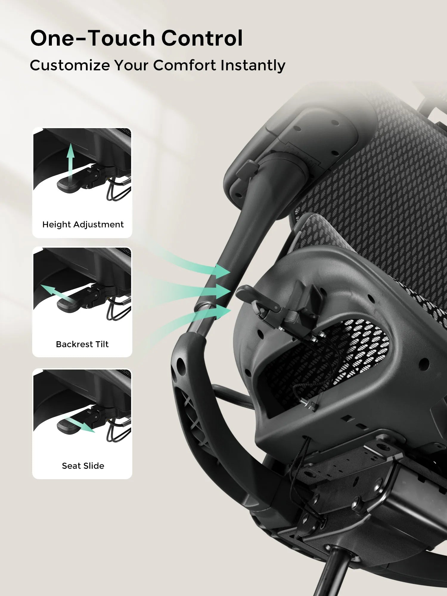 Adjust seat depth, tilt angle, and height with a single button. Switch seamlessly between work and relaxation without complicated adjustments.