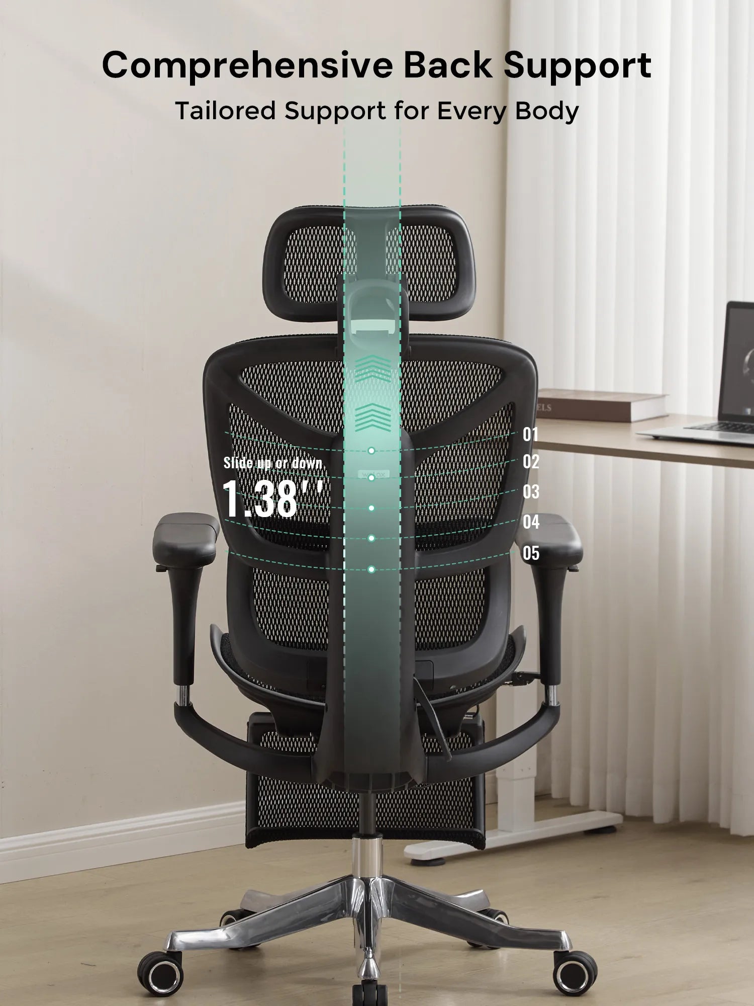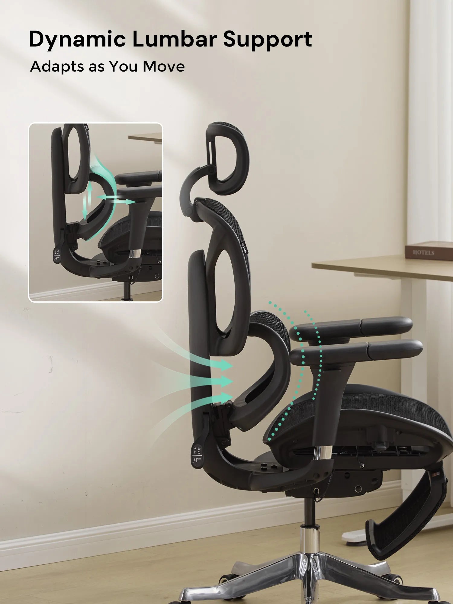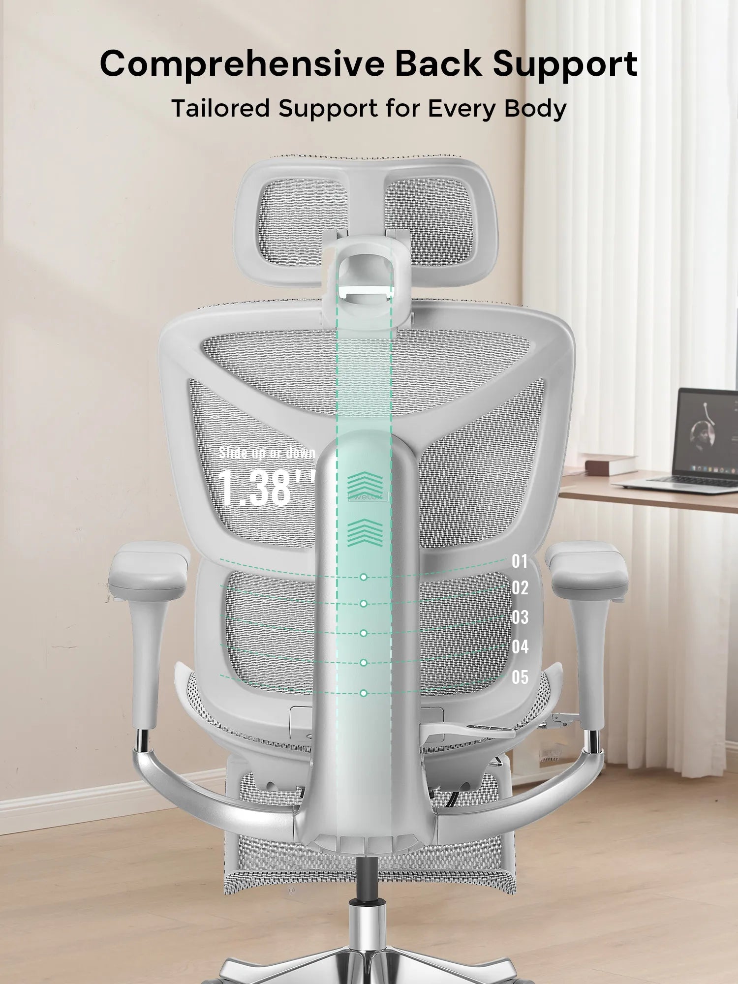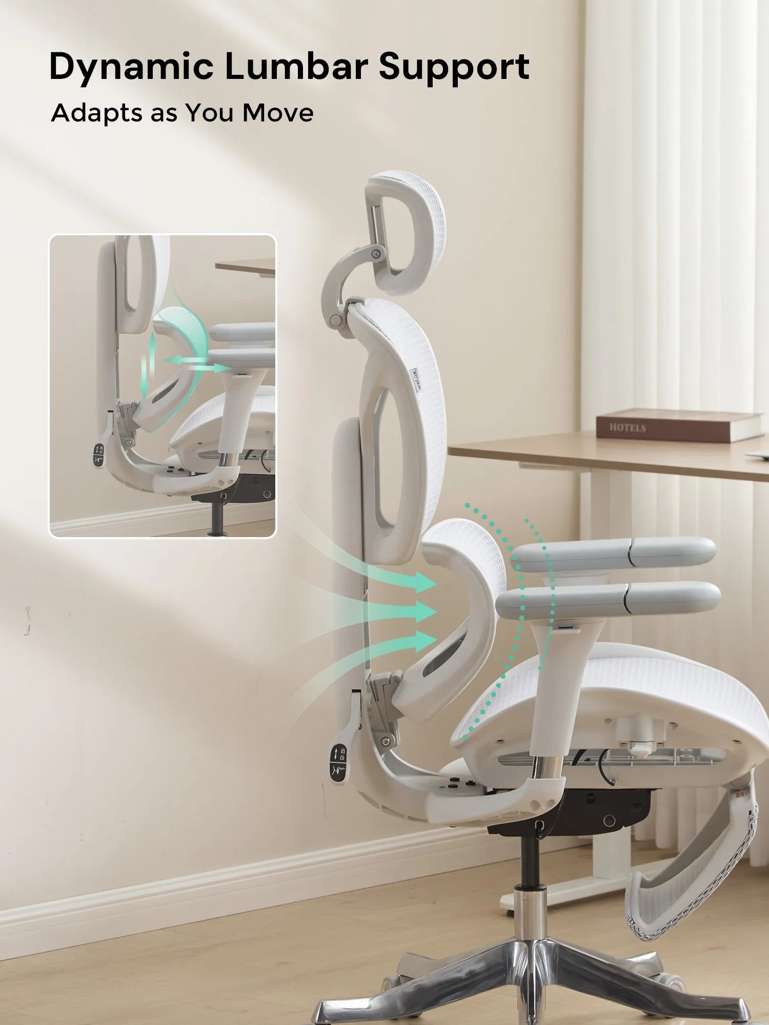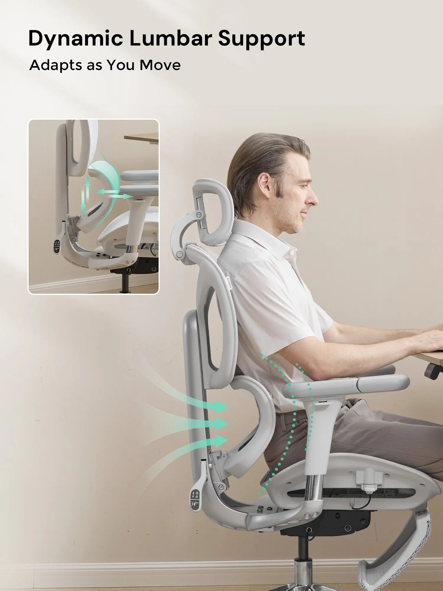 Move in six directions—up, down, forward, backward, inward, and outward. Perfect for typing, meetings, gaming, or relaxing, keeping shoulders and wrists fully supported.