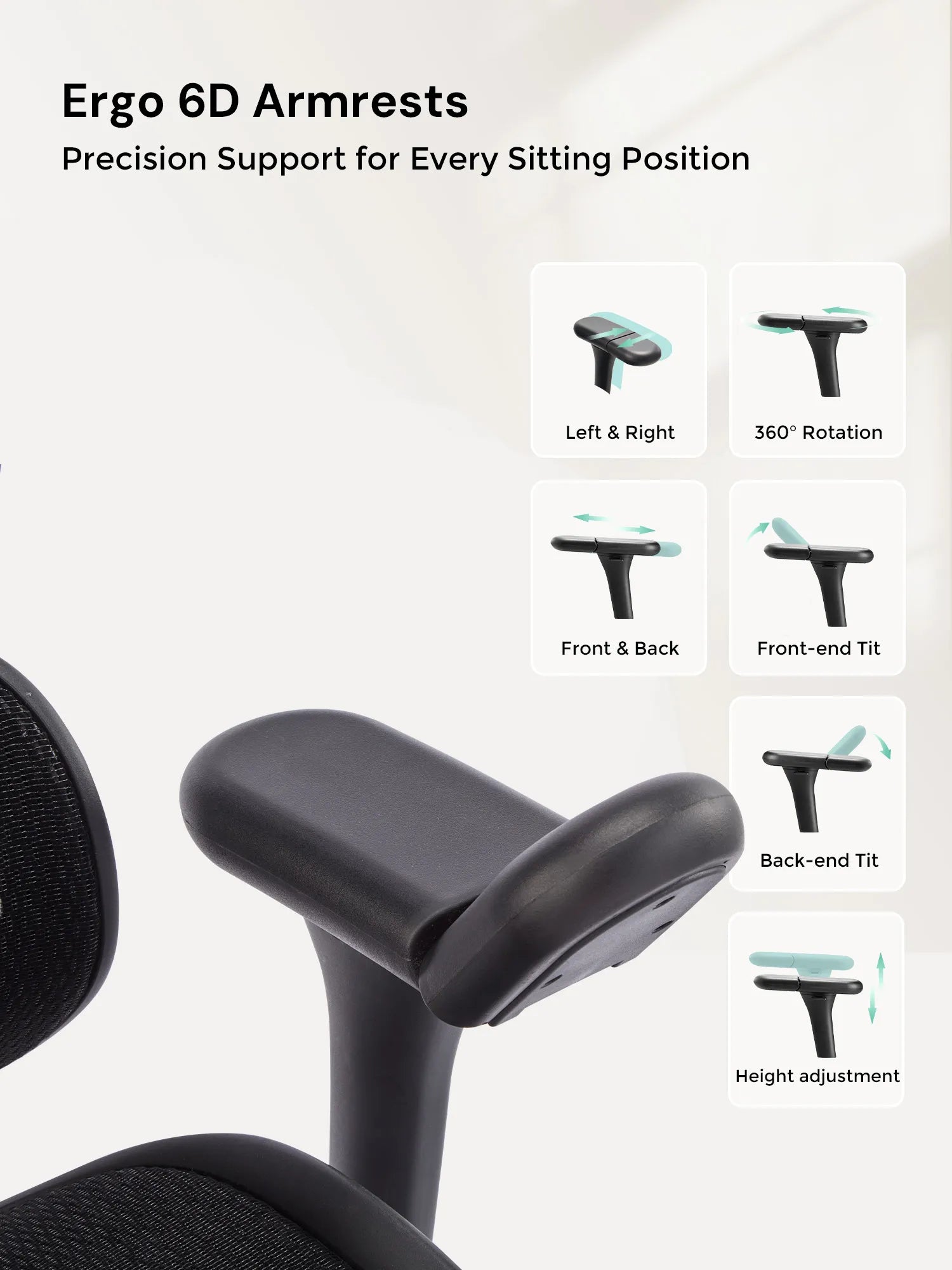 2. 6D Armrests for Total Support