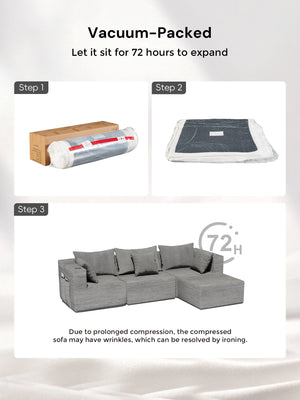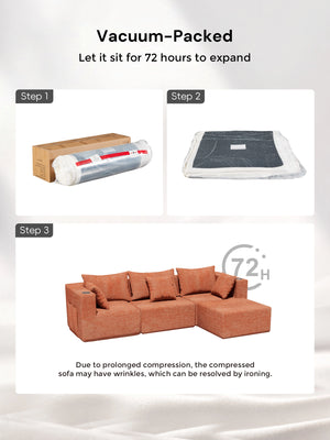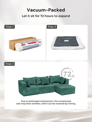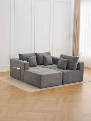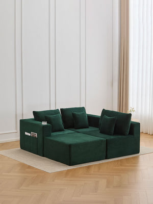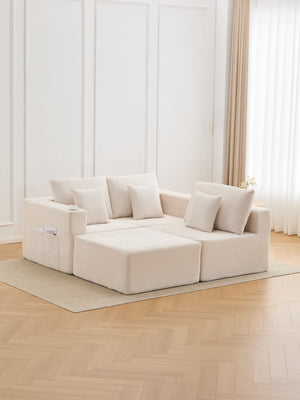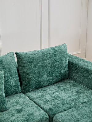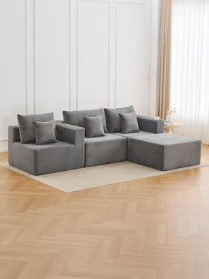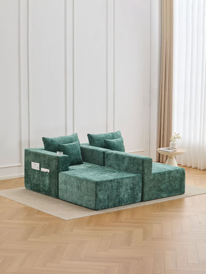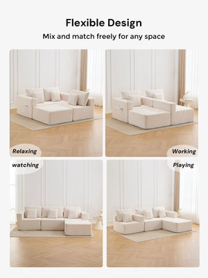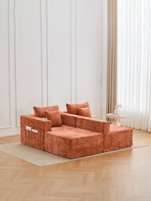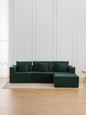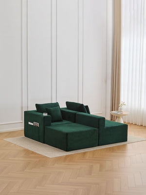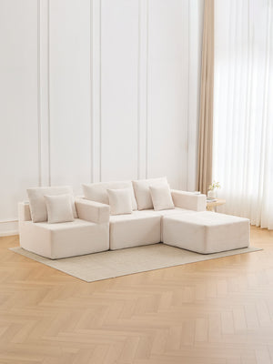 Designed with interchangeable sections, the sofa can be arranged as a three-seater, chaise lounge, or separated units. Its modular versatility adapts effortlessly to different rooms and occasions.
