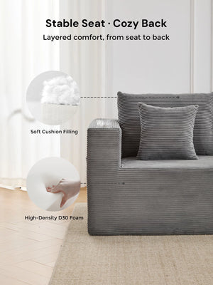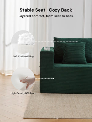 Available in both corduroy and chenille, the sofa lets you choose between cozy texture and sleek elegance. Each fabric type offers its own unique comfort and style to match your living space.