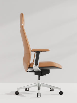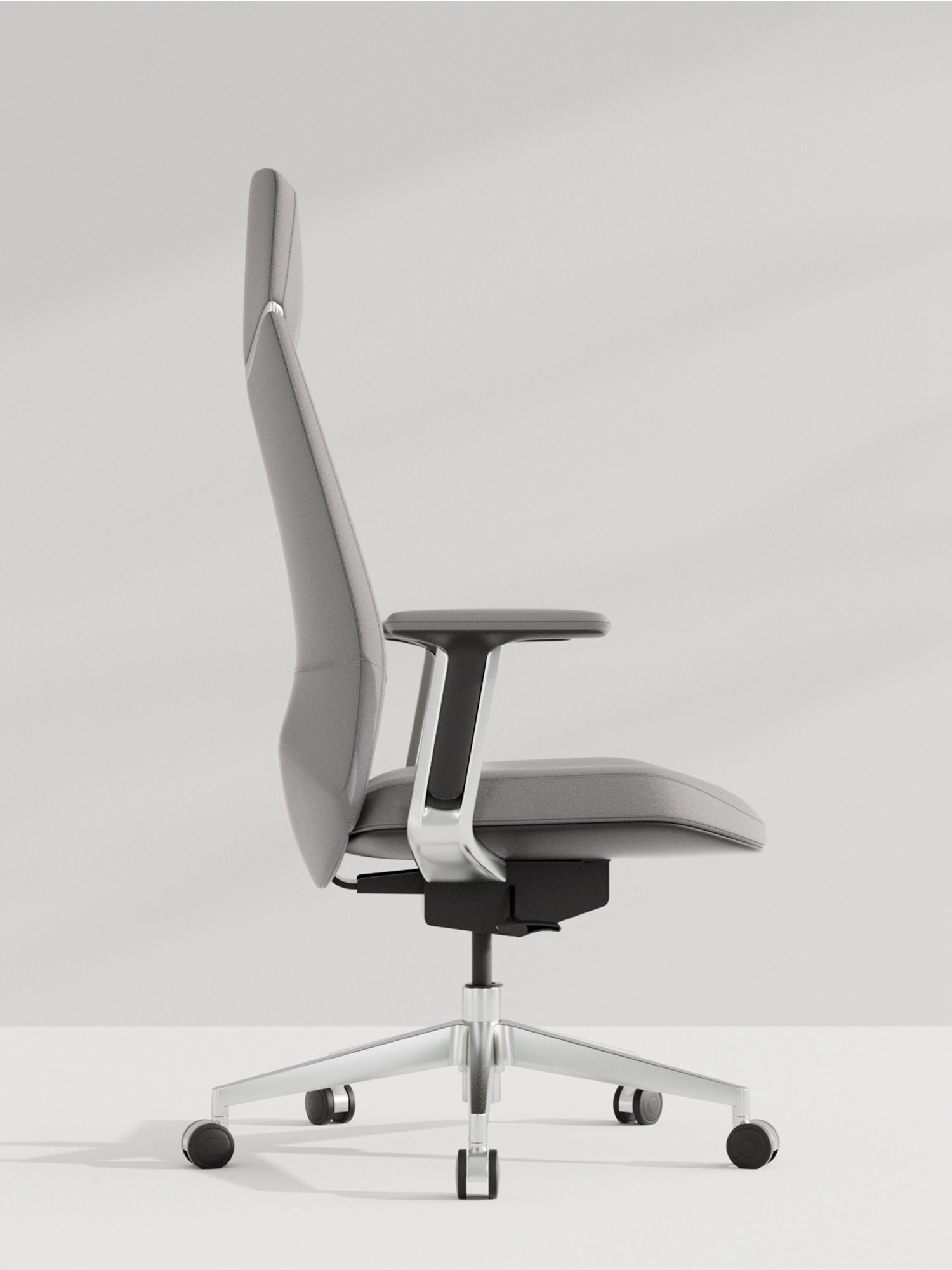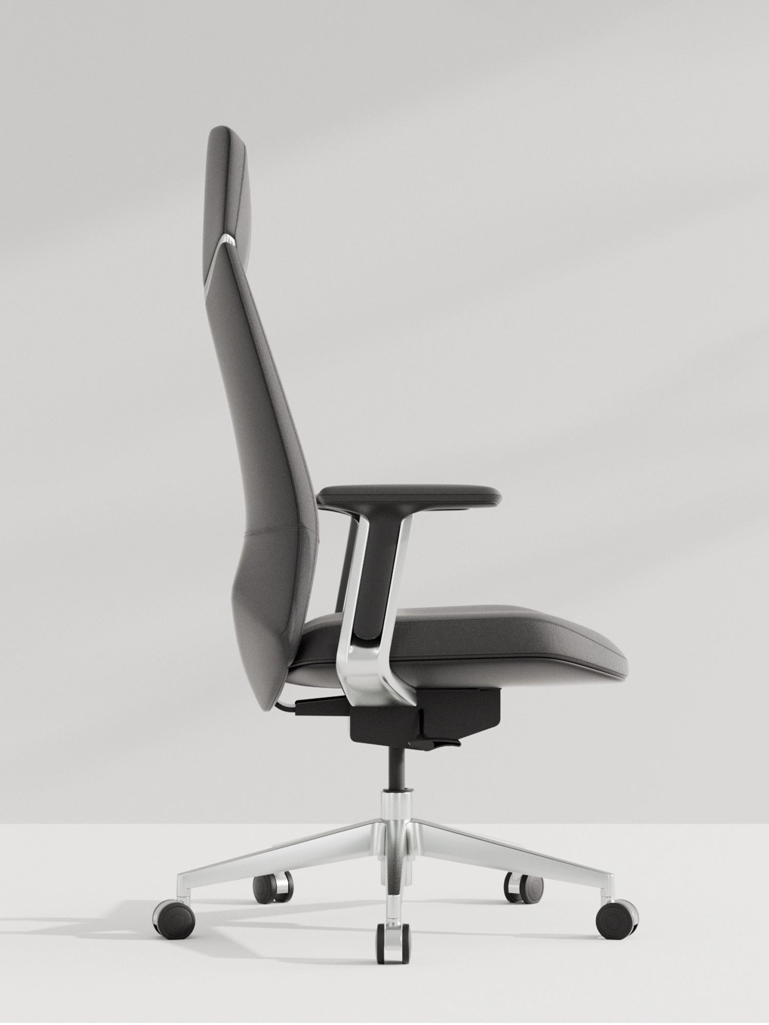 Polished aluminum alloy five-star base, tested beyond BIFMA standards.