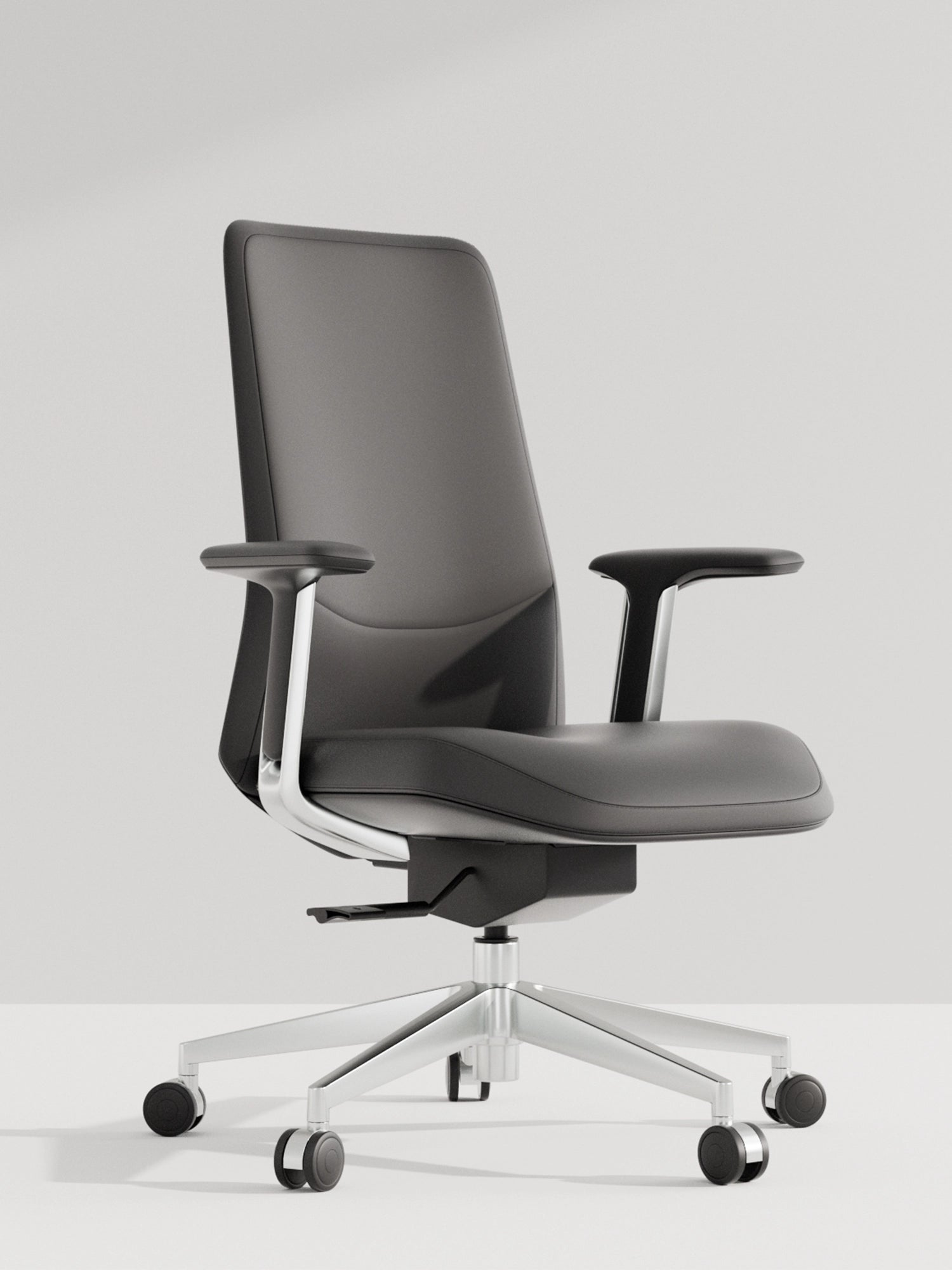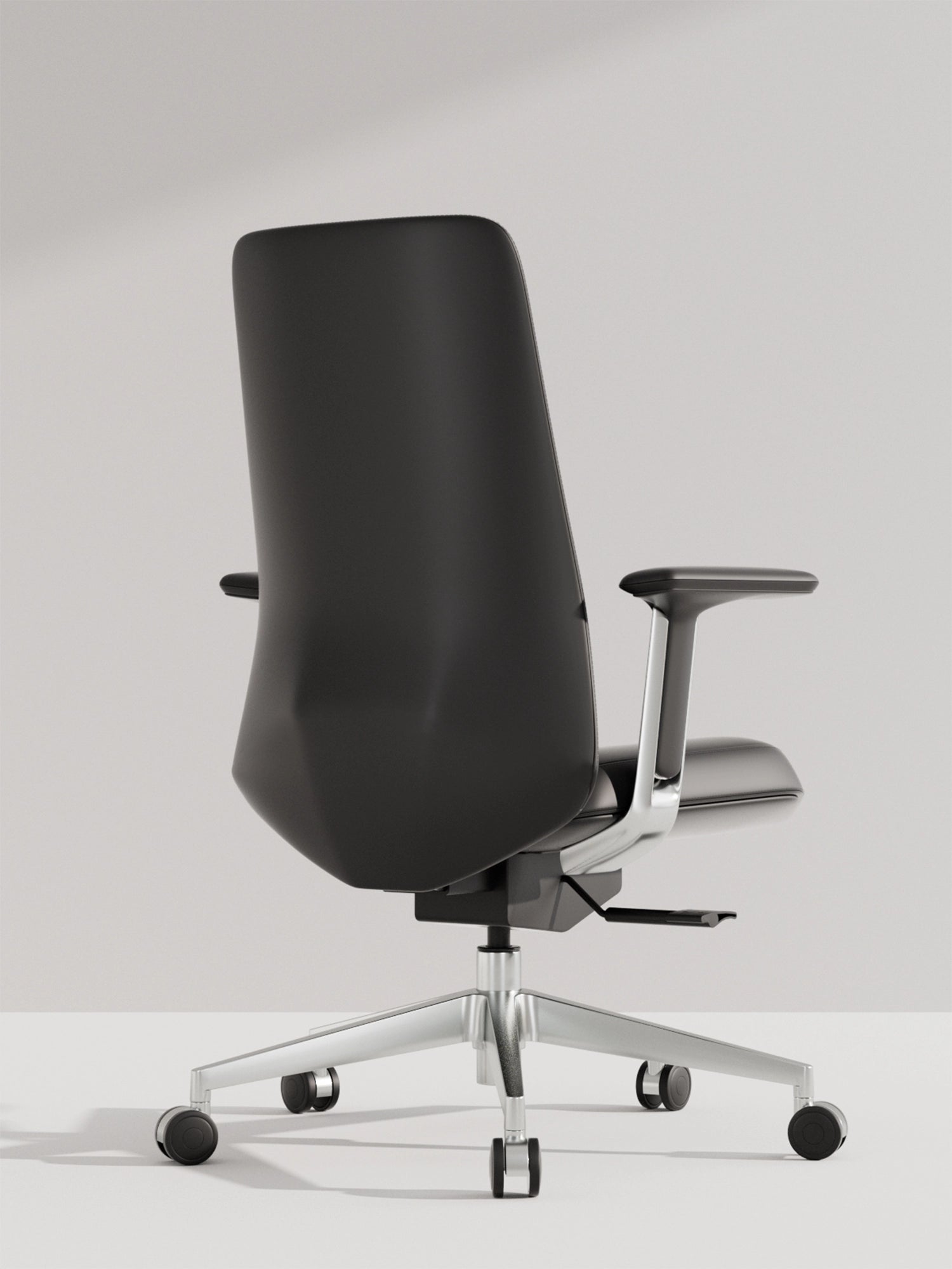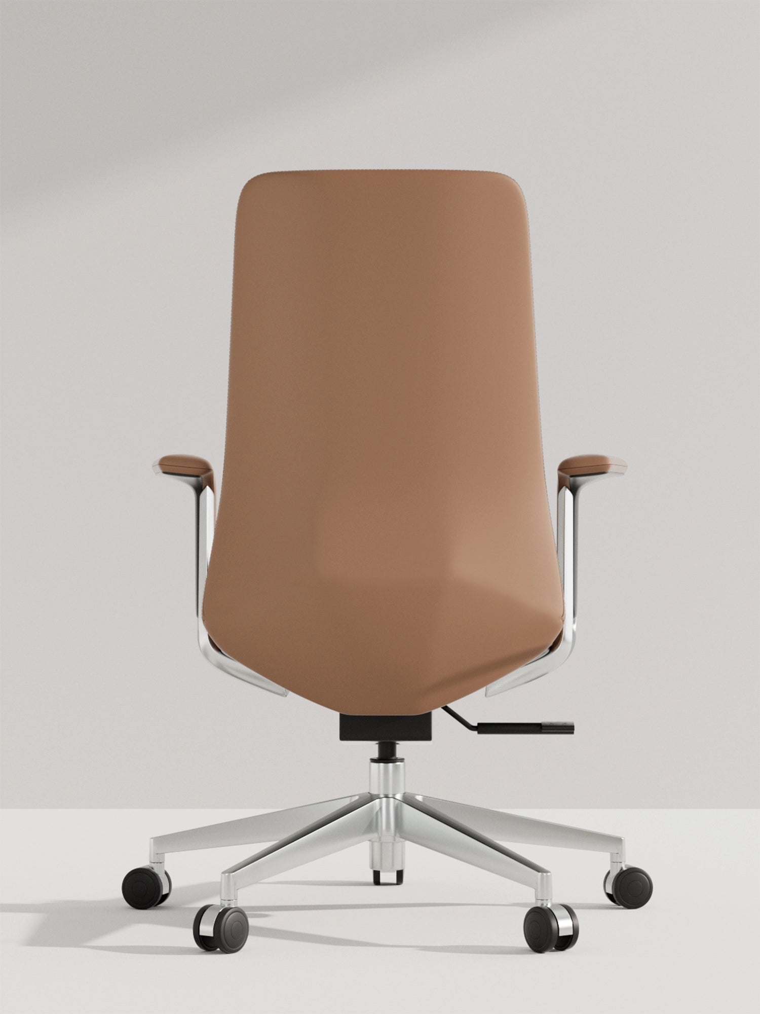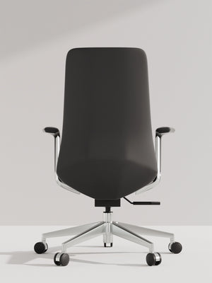 Polished aluminum alloy five-star base tested to exceed BIFMA standards, ensuring stability and style.
