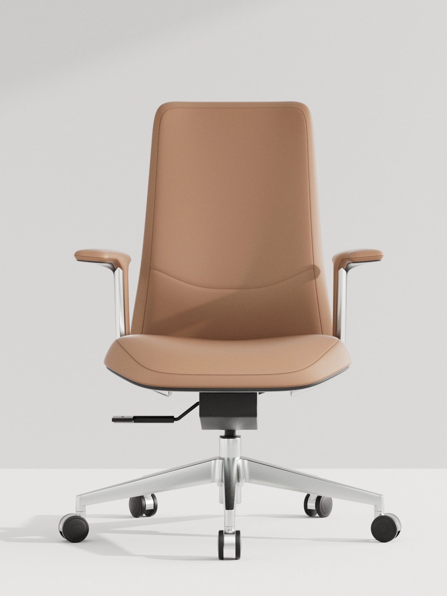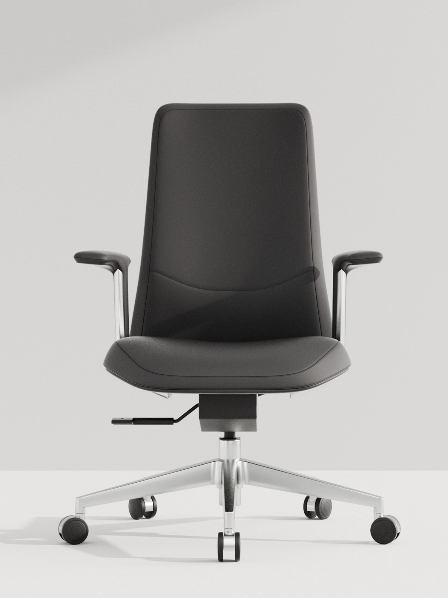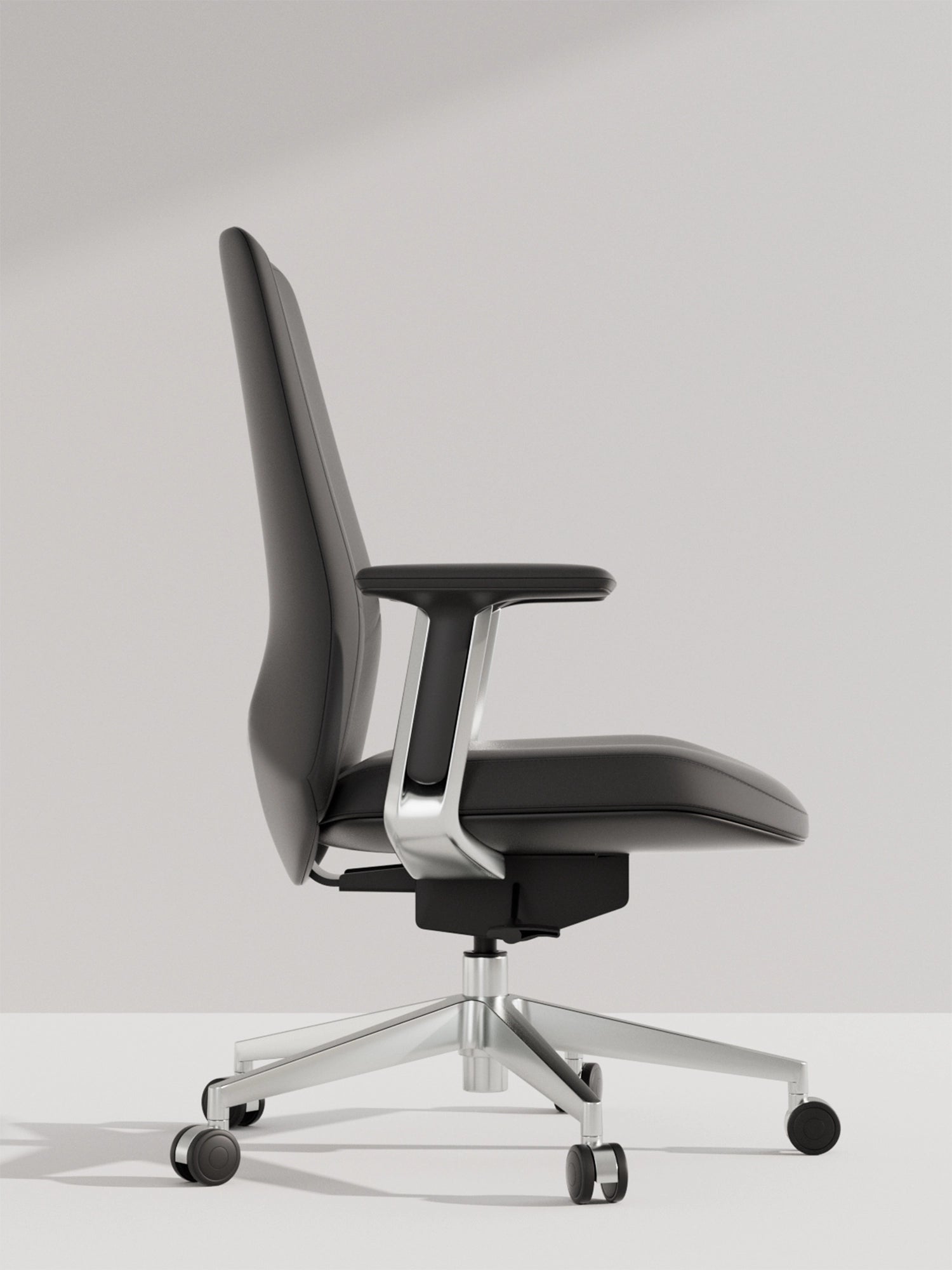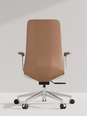 Polished aluminum alloy five-star base tested to exceed BIFMA standards, ensuring stability and style.
