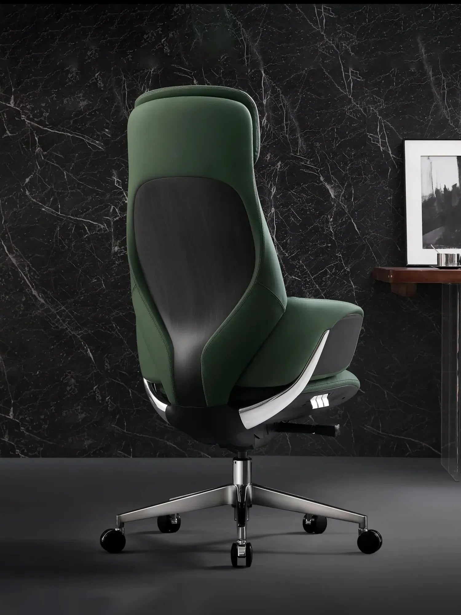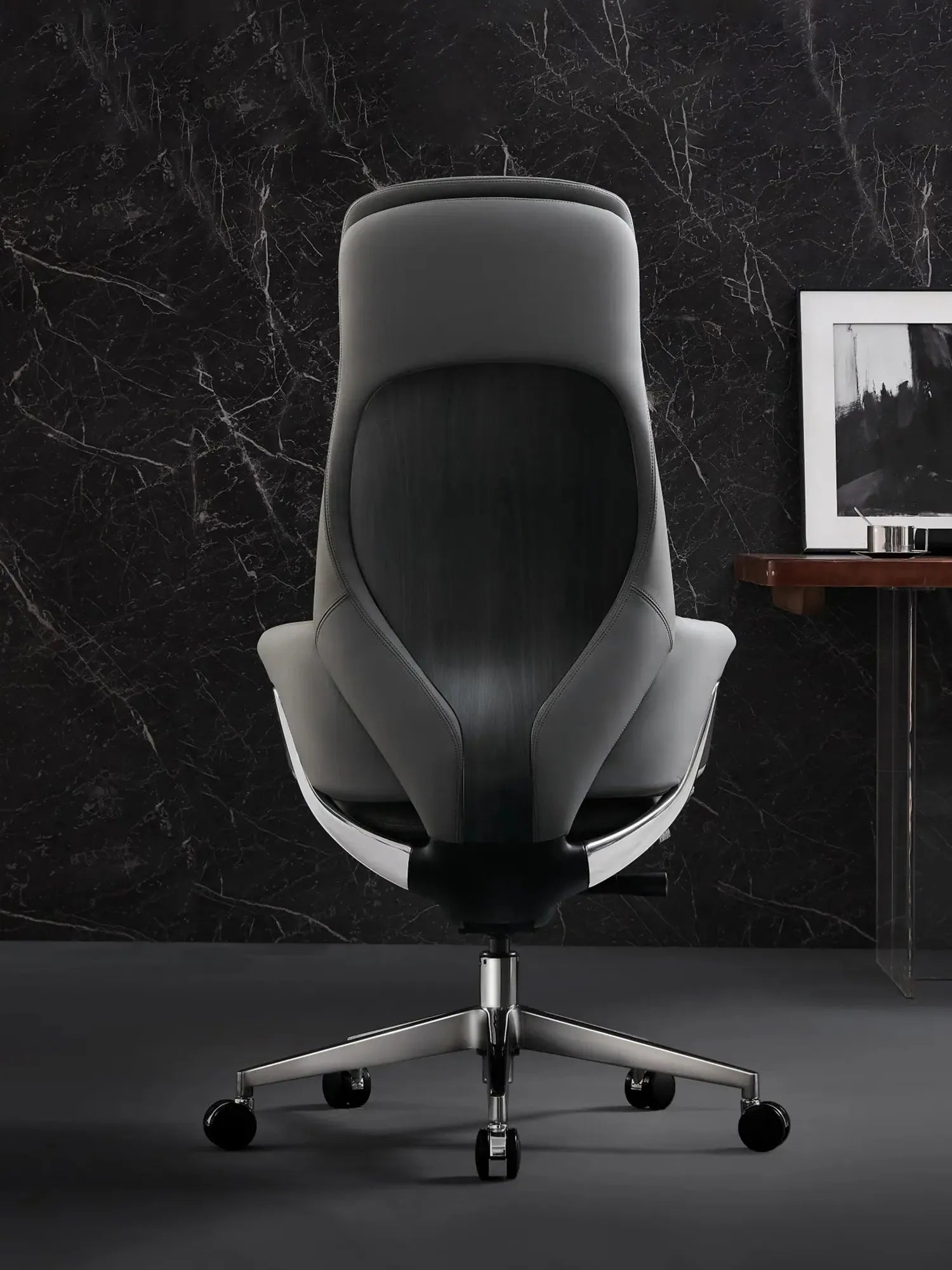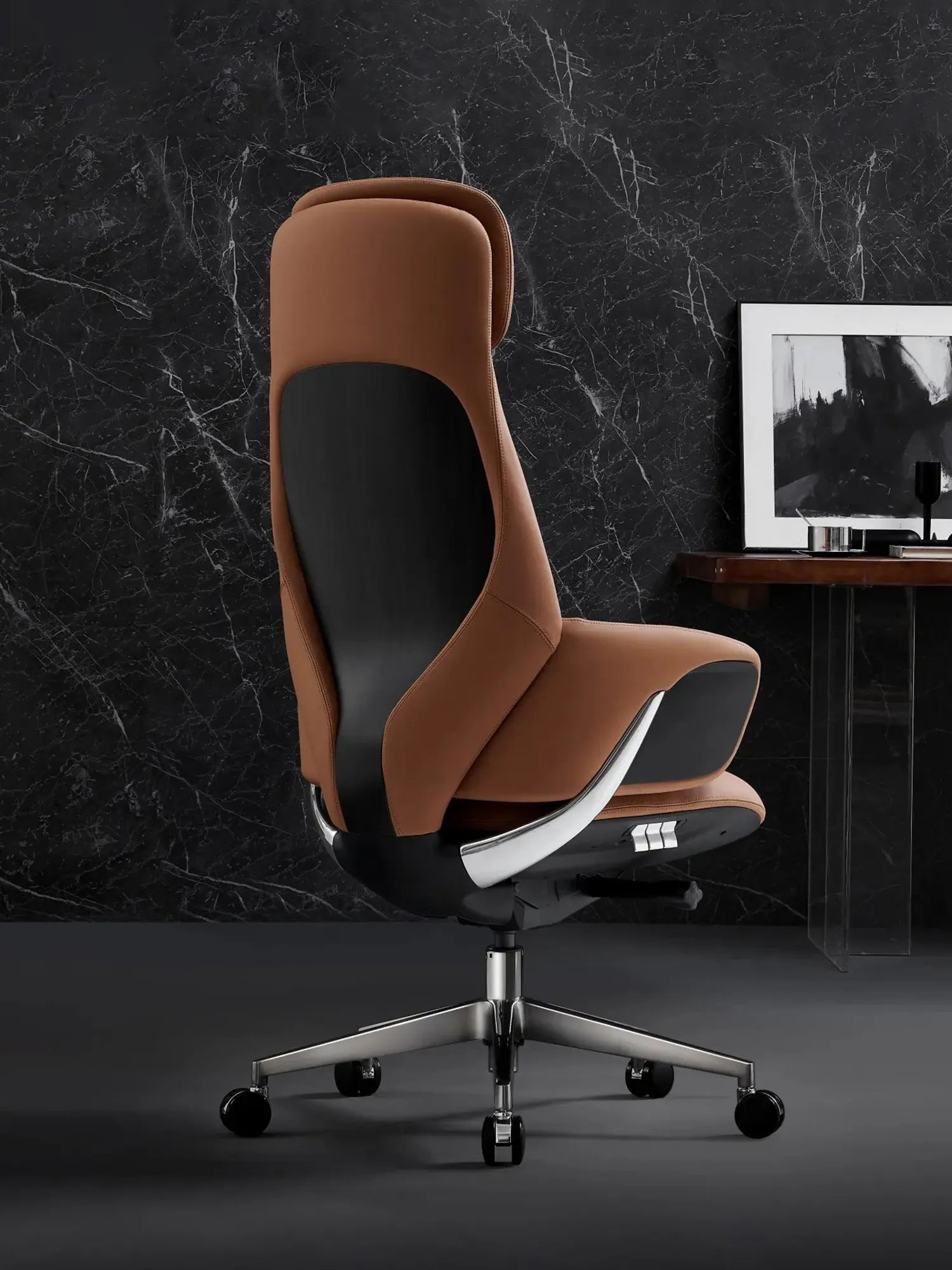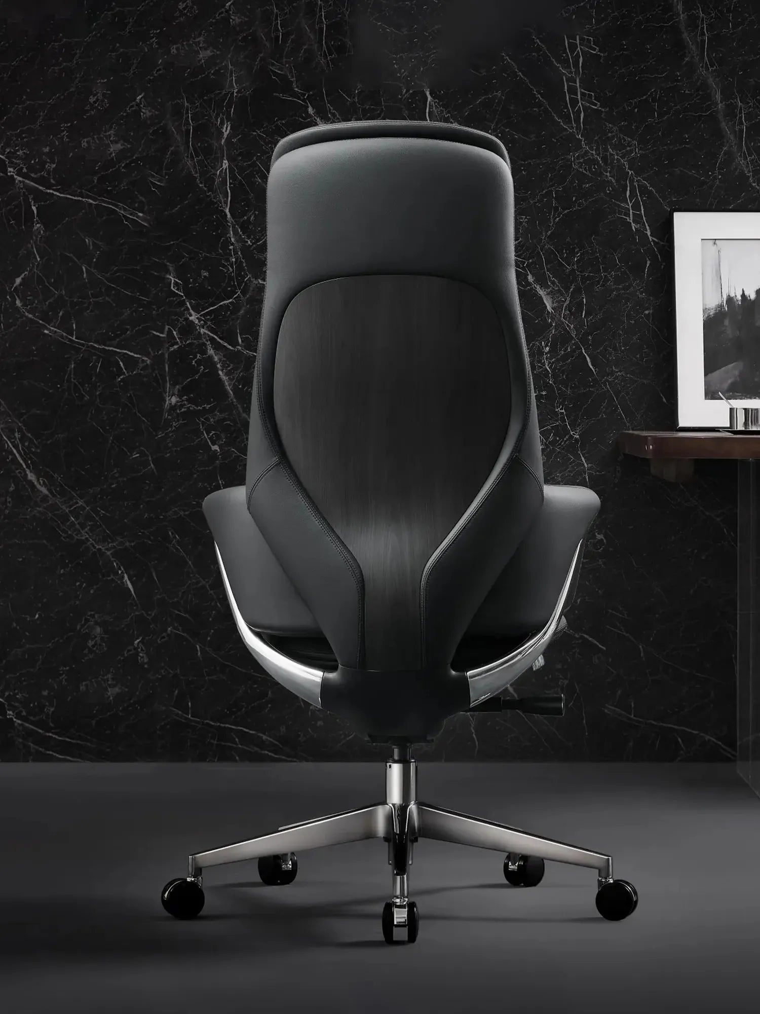 The high-back chair can be rotated 360 degrees, adjusted for sitting height, sitting depth, tilted the back synchronously, and locked tilt angle steplessly, adjusted for tilt force.