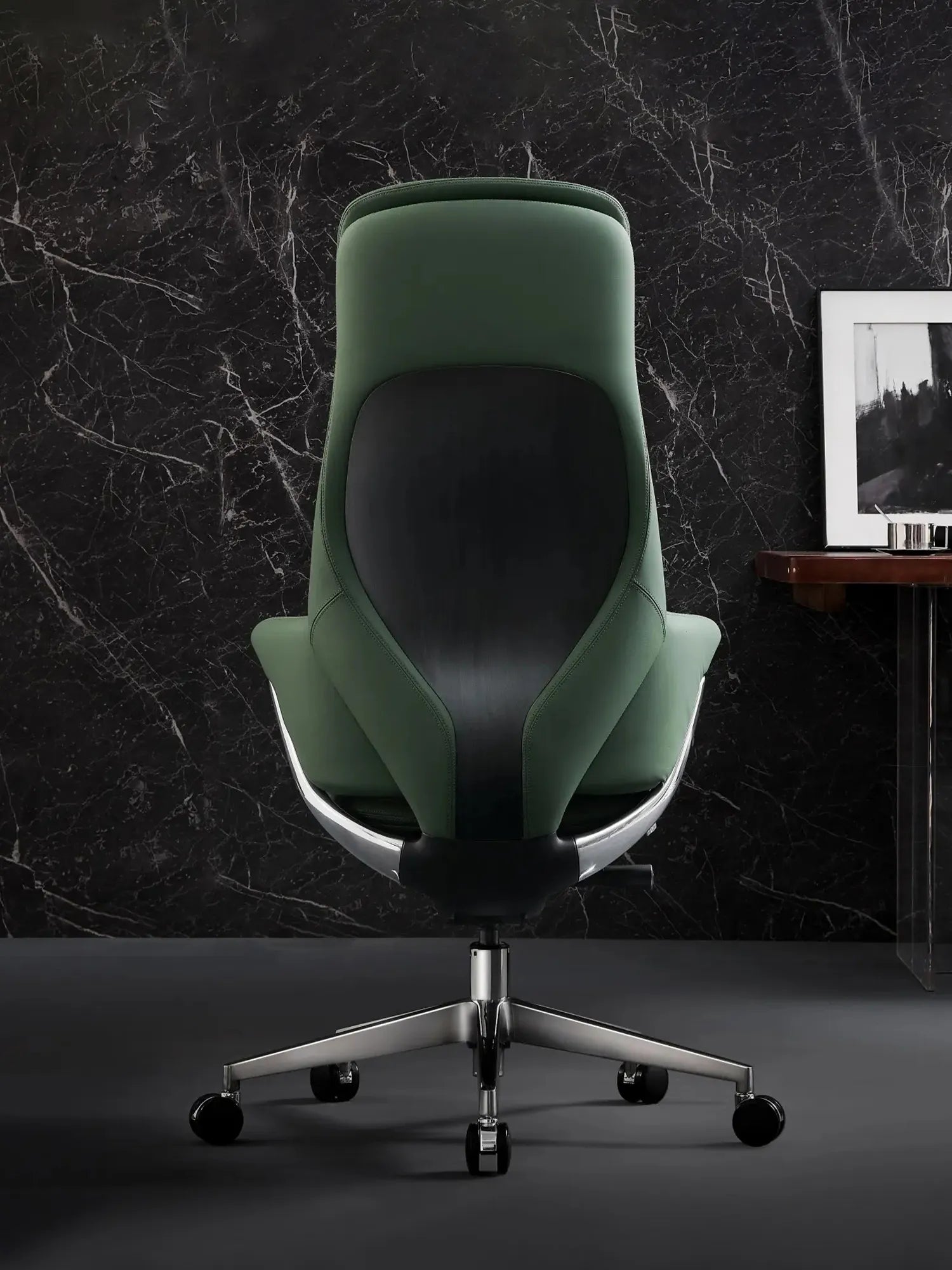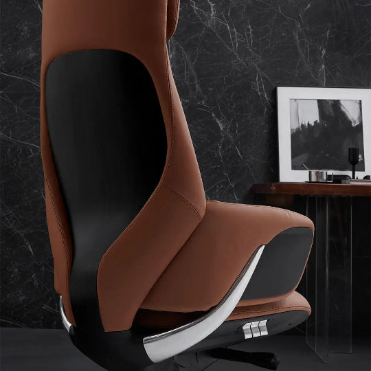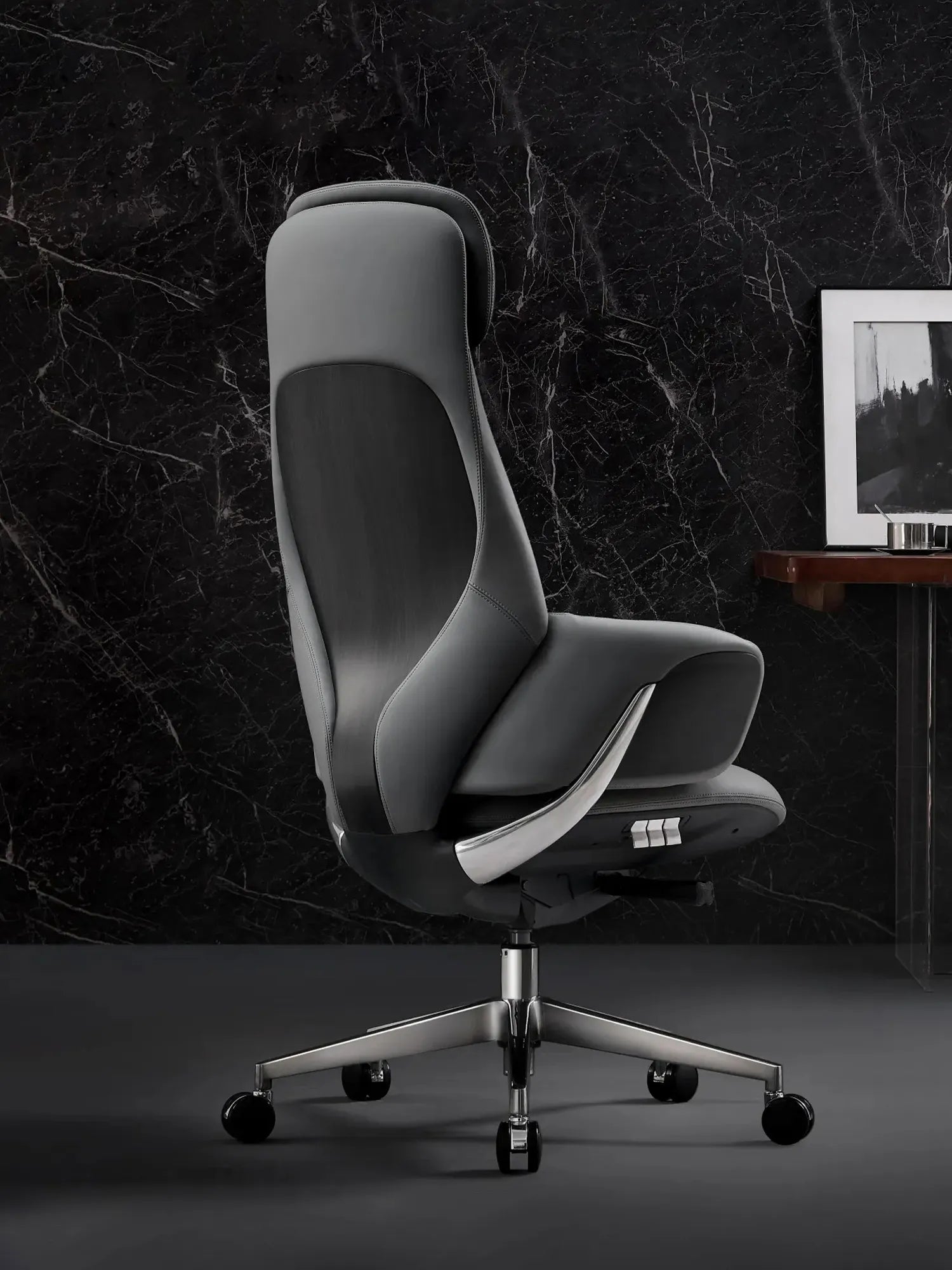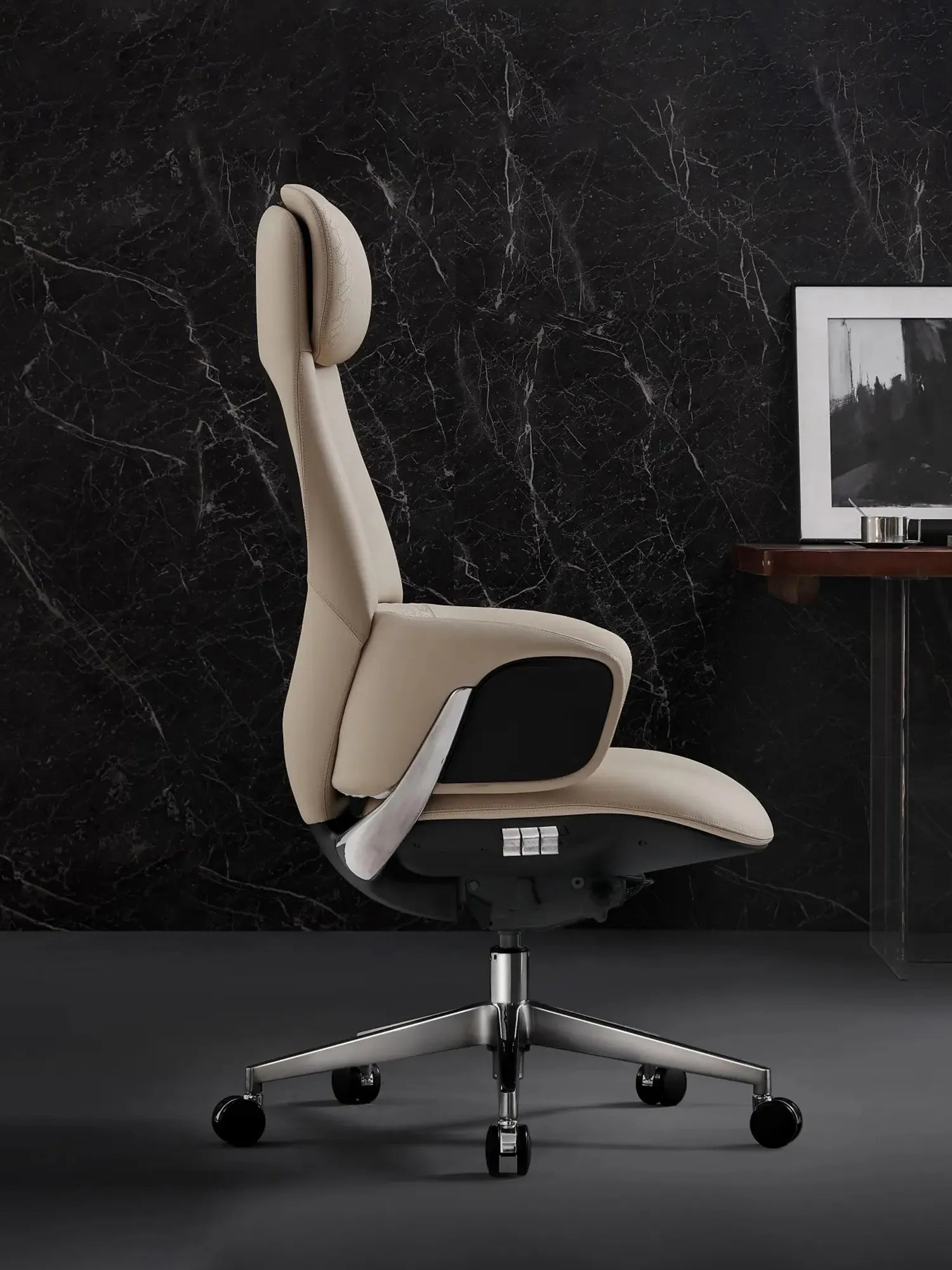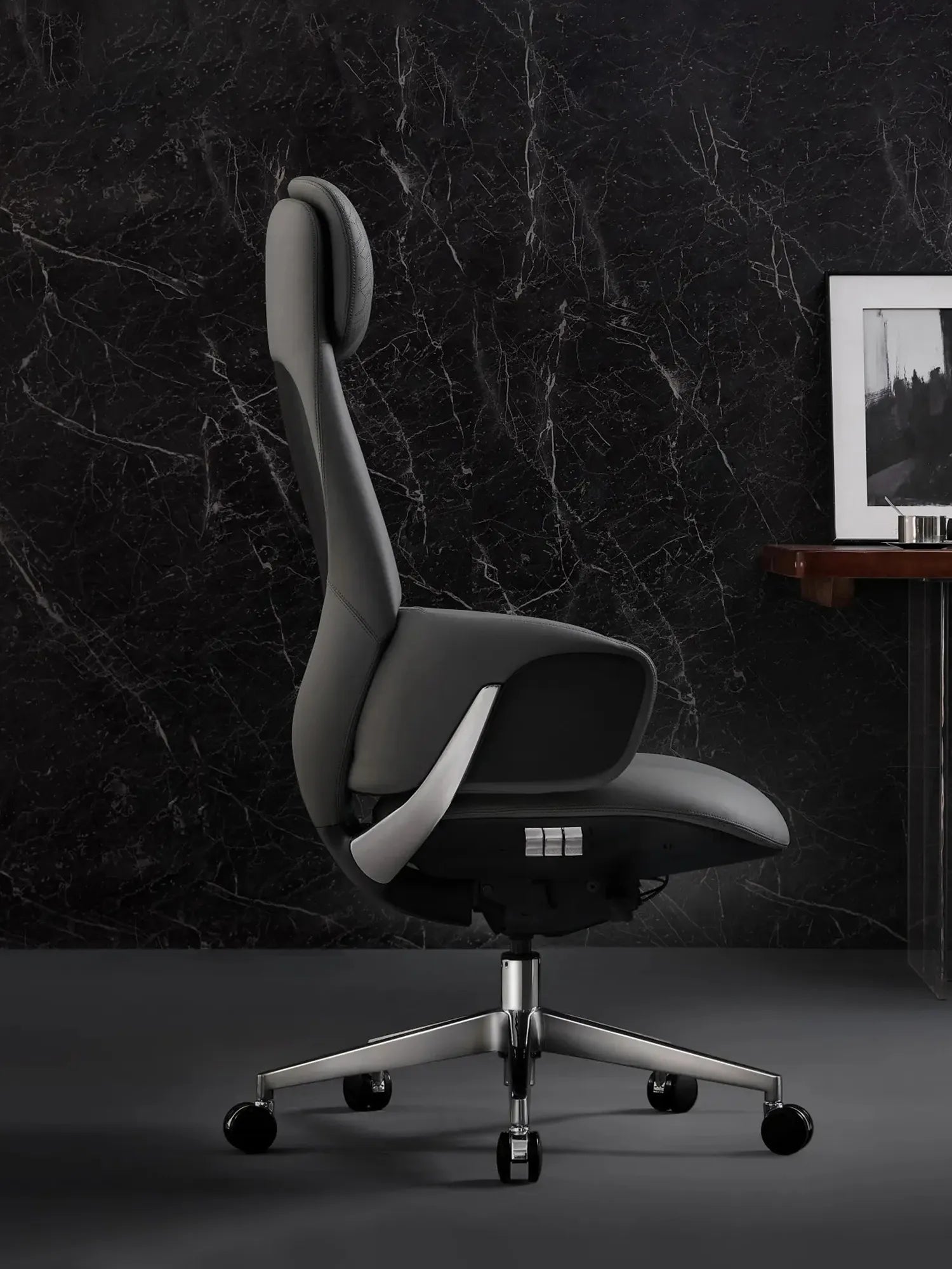 The high-back chair can be rotated 360 degrees, adjusted for sitting height, sitting depth, tilted the back synchronously, and locked tilt angle steplessly, adjusted for tilt force.