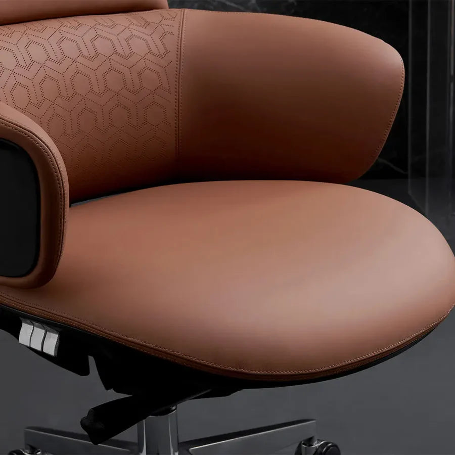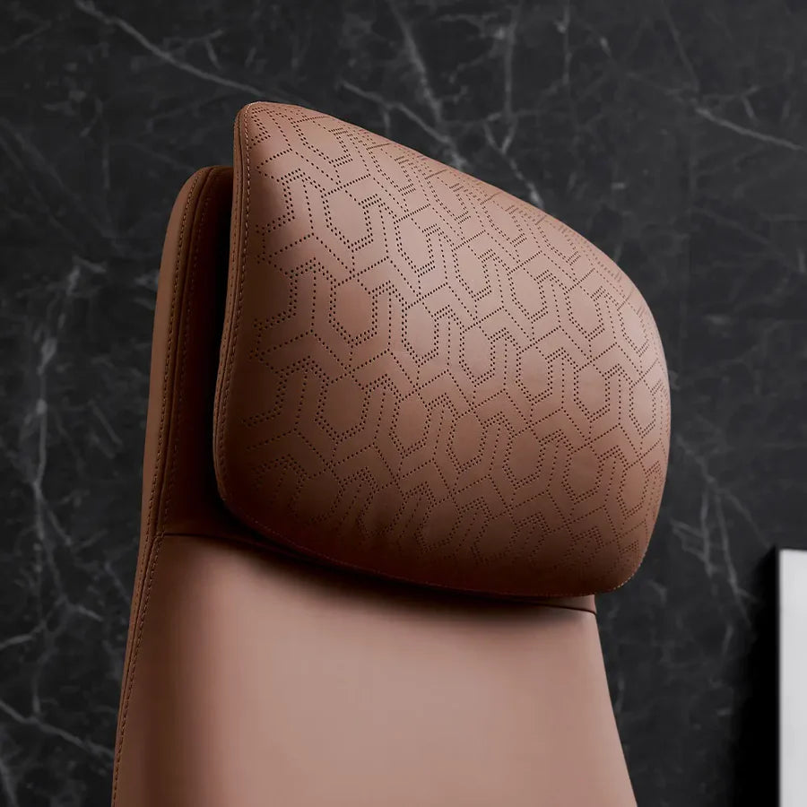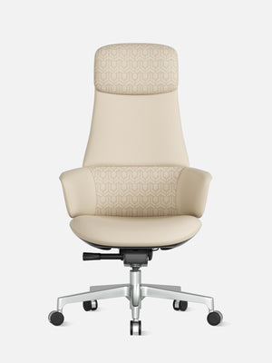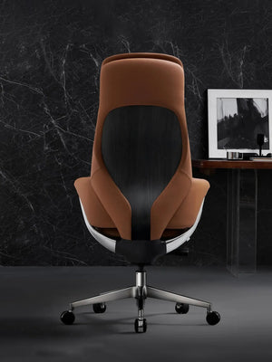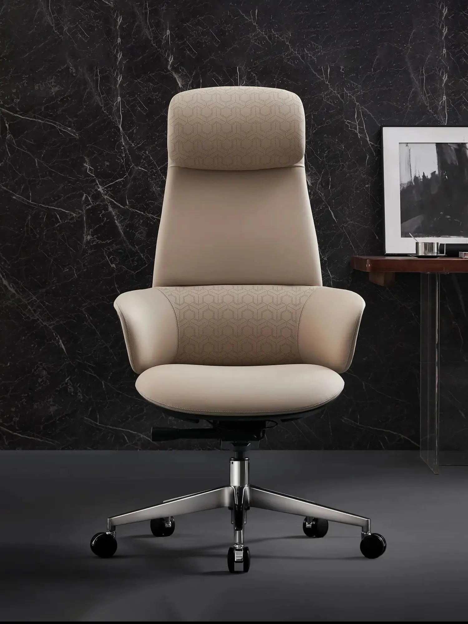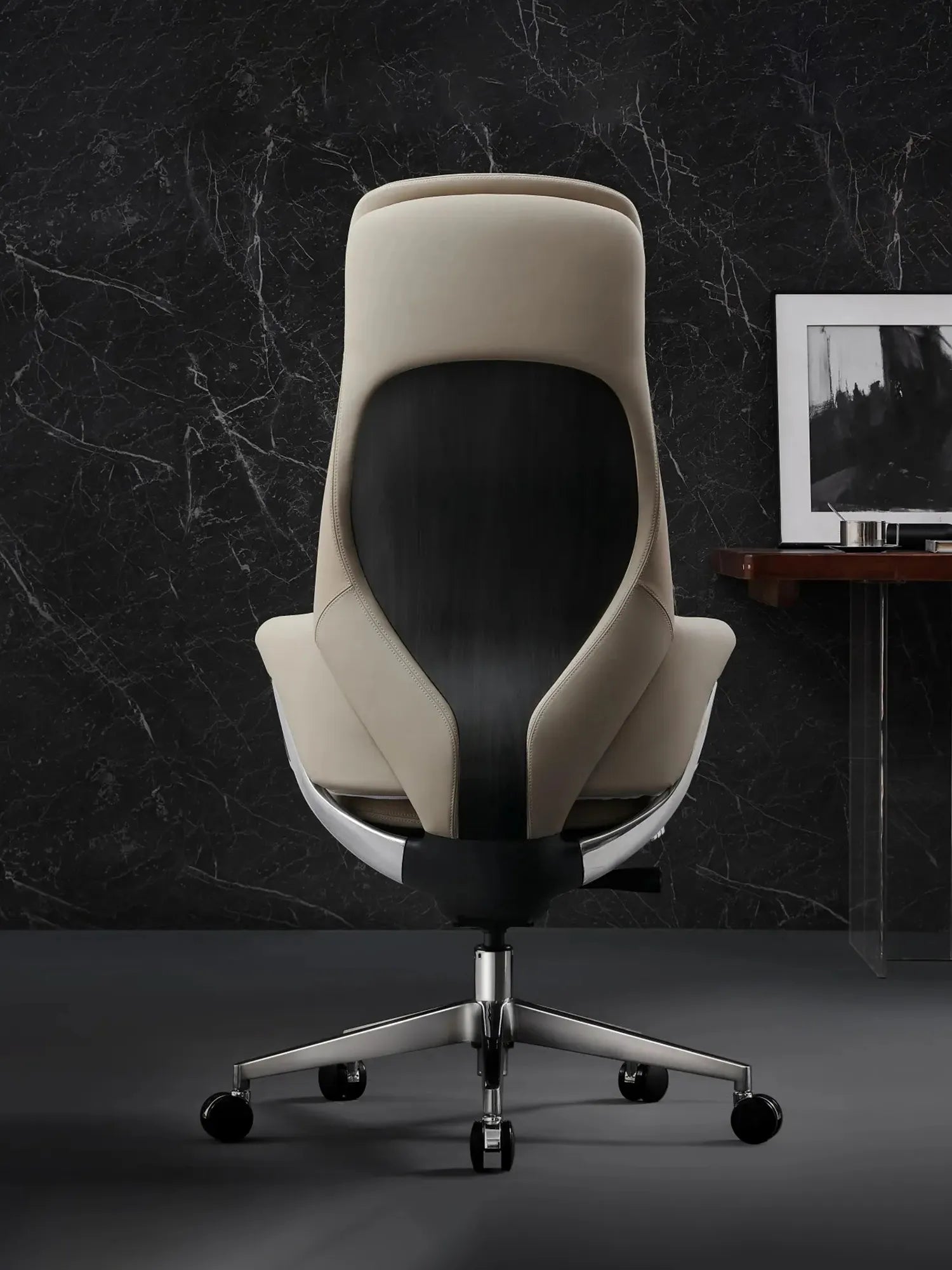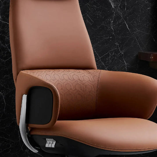 The high-back chair can be rotated 360 degrees, adjusted for sitting height, sitting depth, tilted the back synchronously, and locked tilt angle steplessly, adjusted for tilt force.