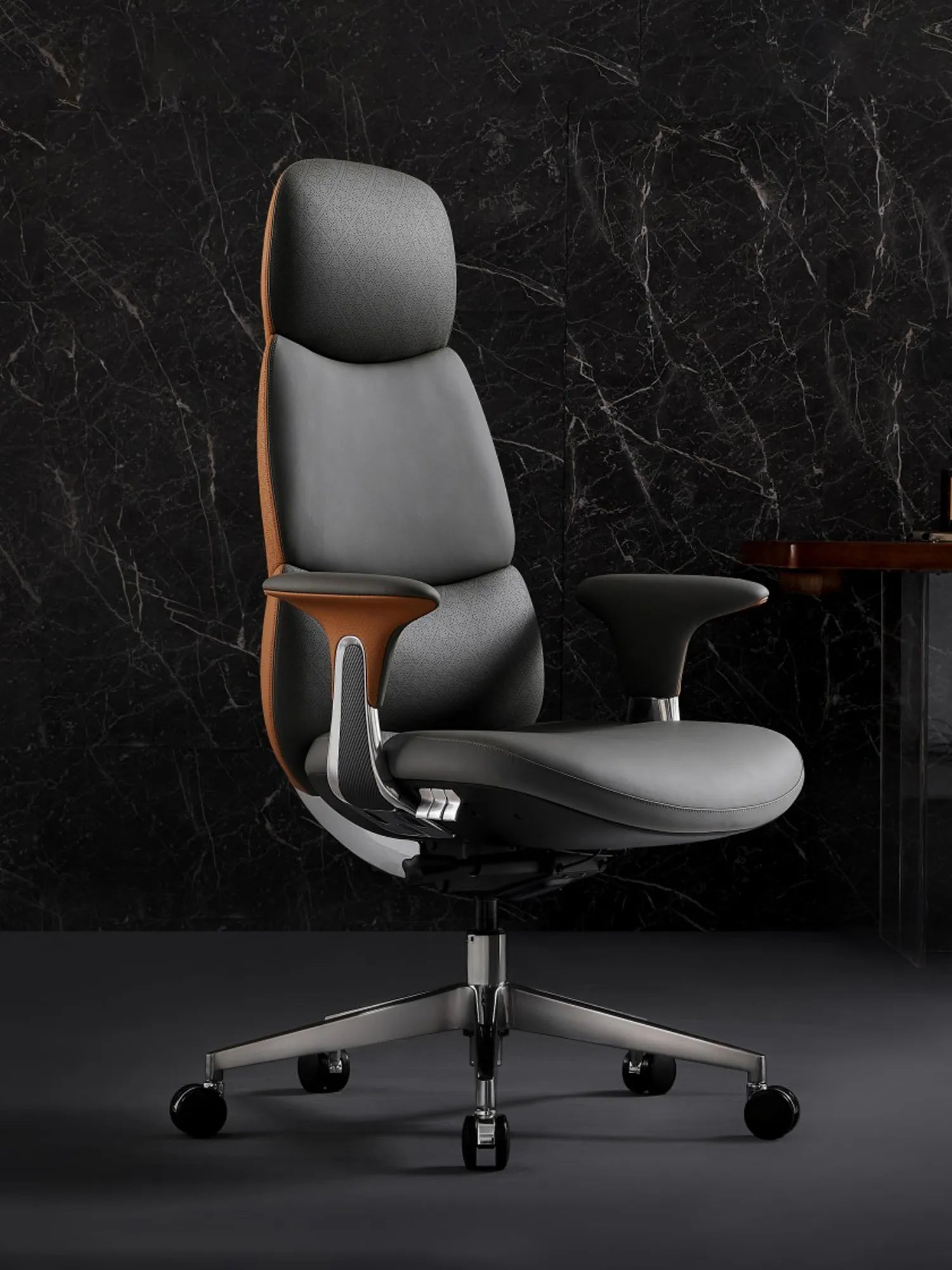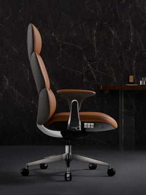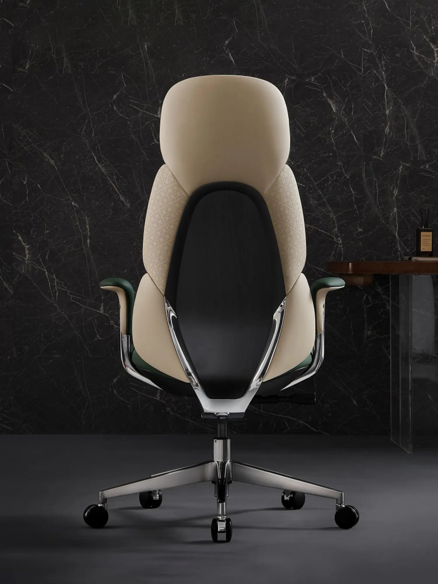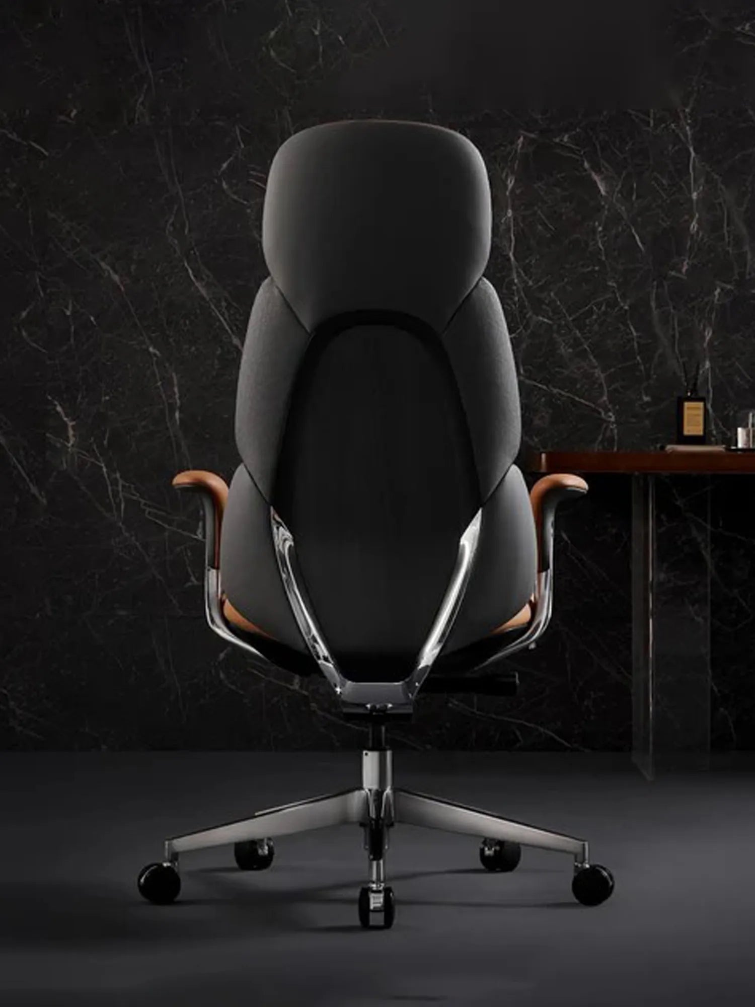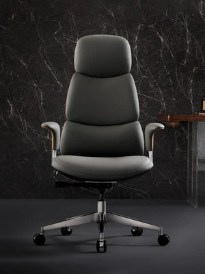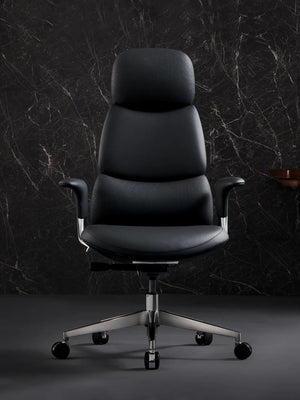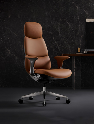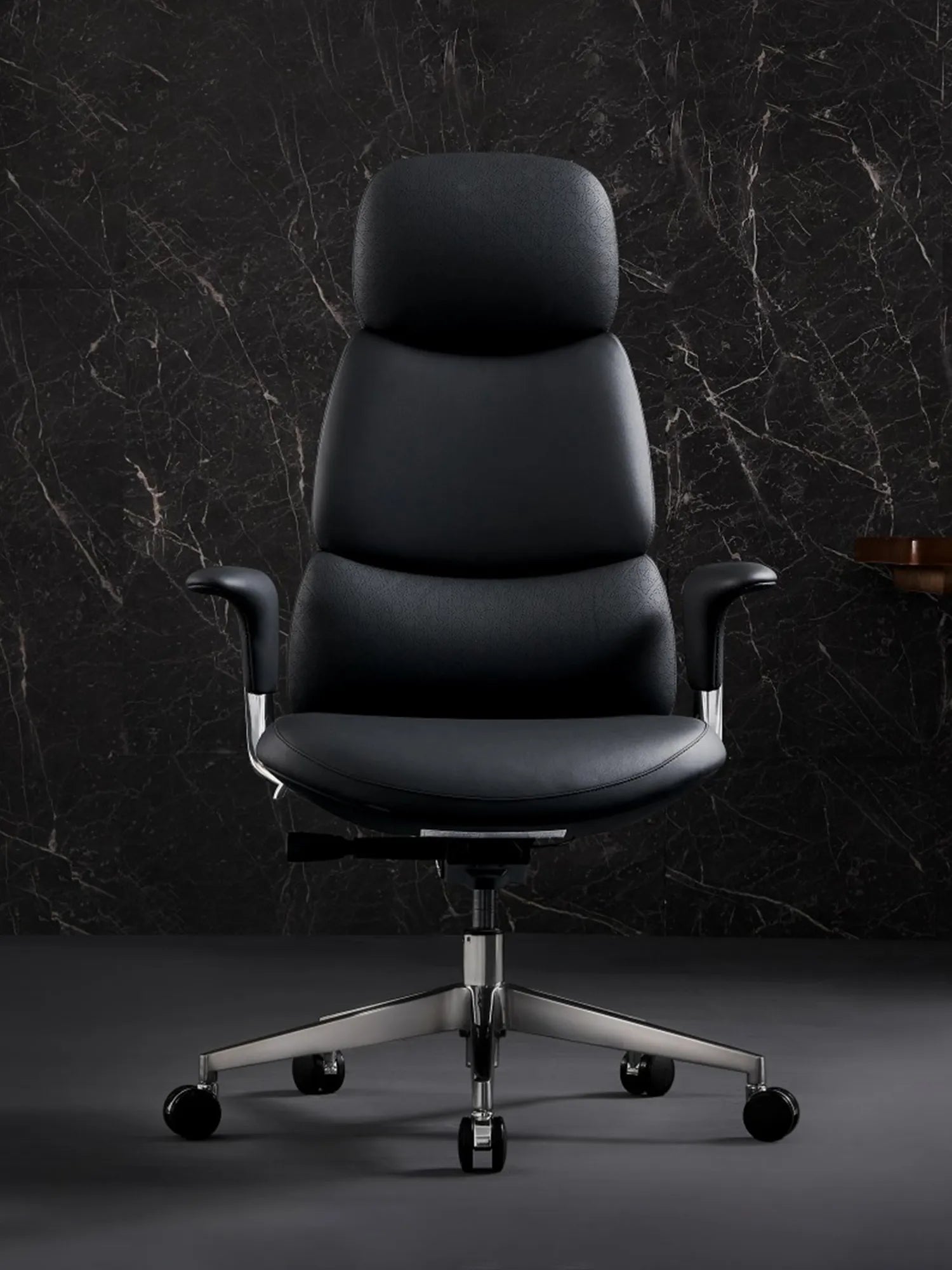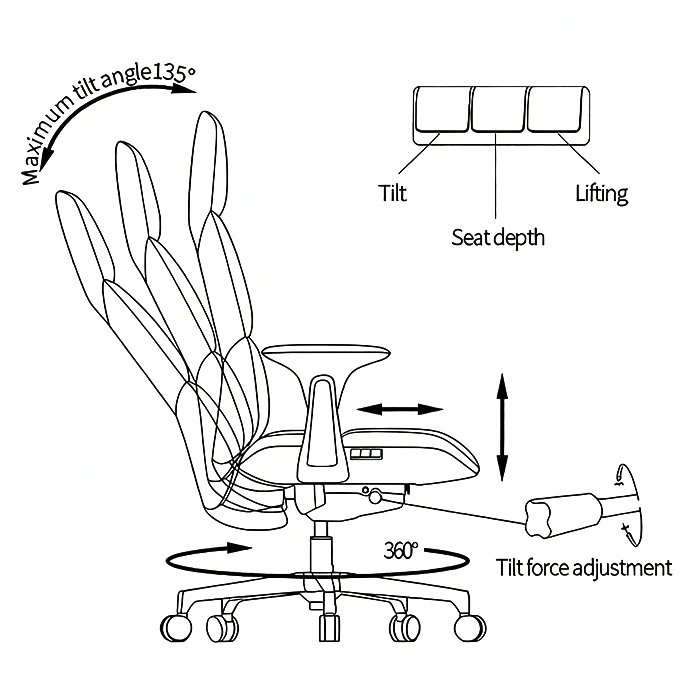 The high-back chair can be rotated 360 degrees, adjusted for sitting height, sitting depth, tilted the back synchronously, and locked tilt angle steplessly, adjusted for tilt force.