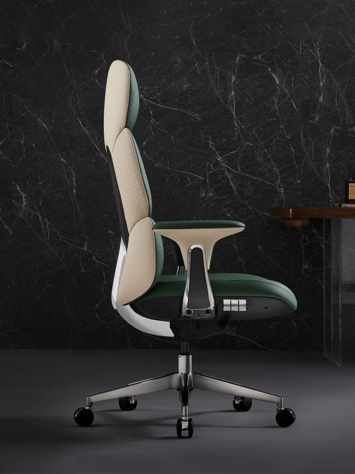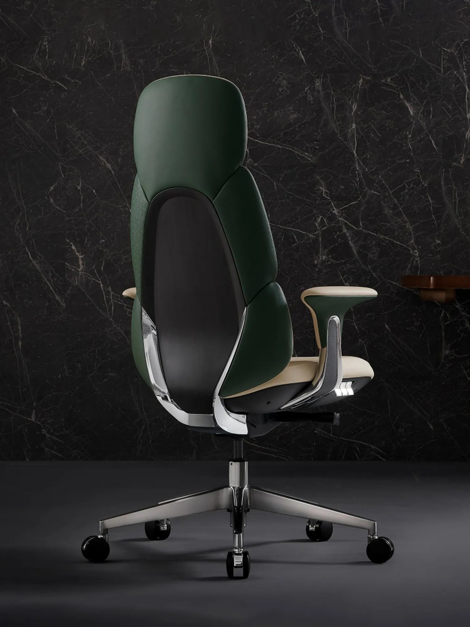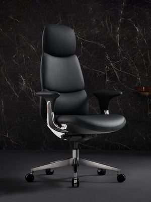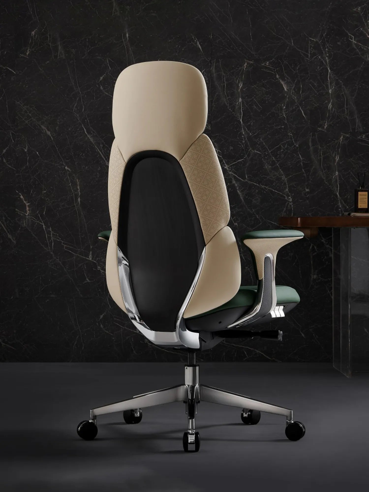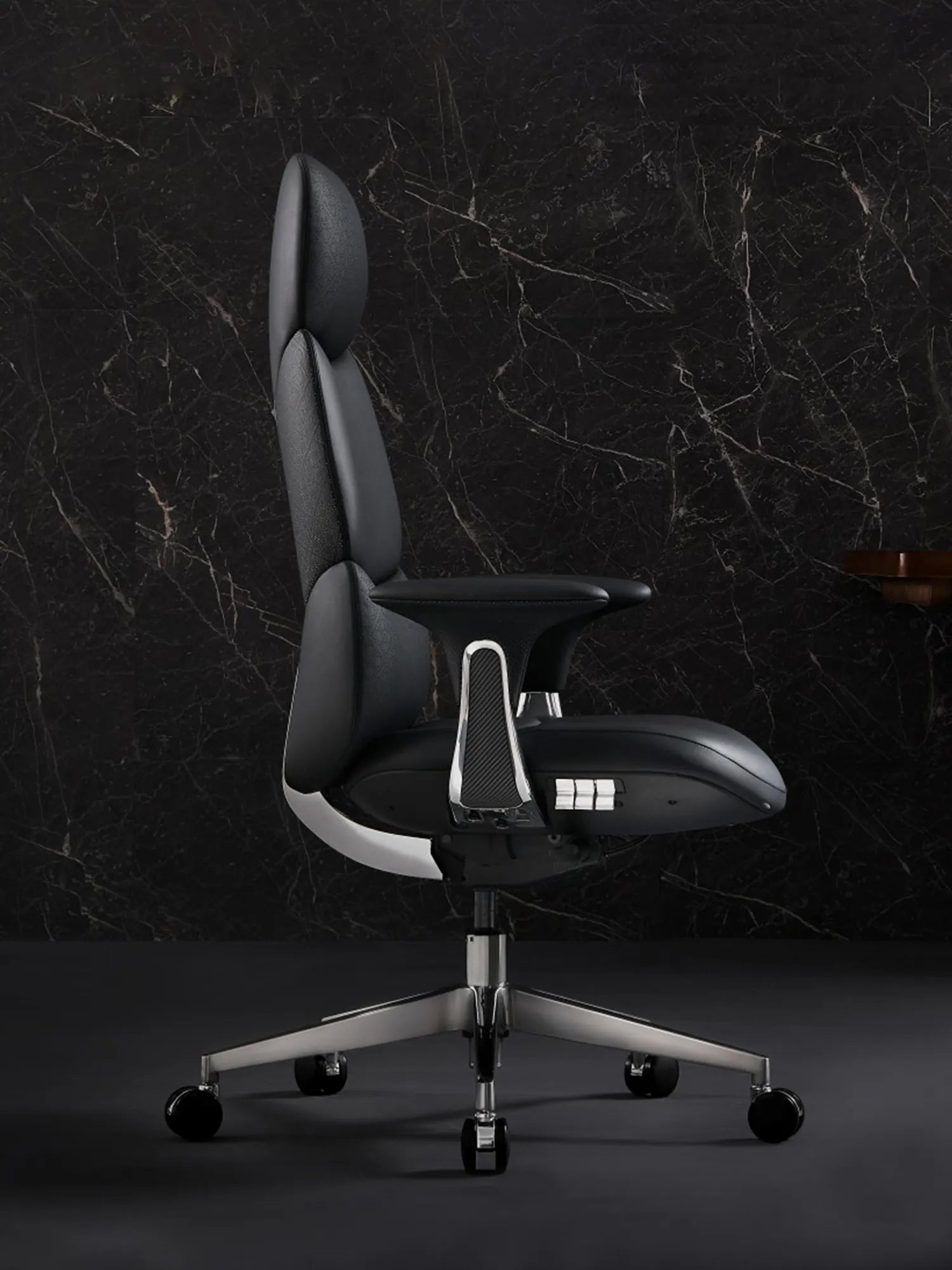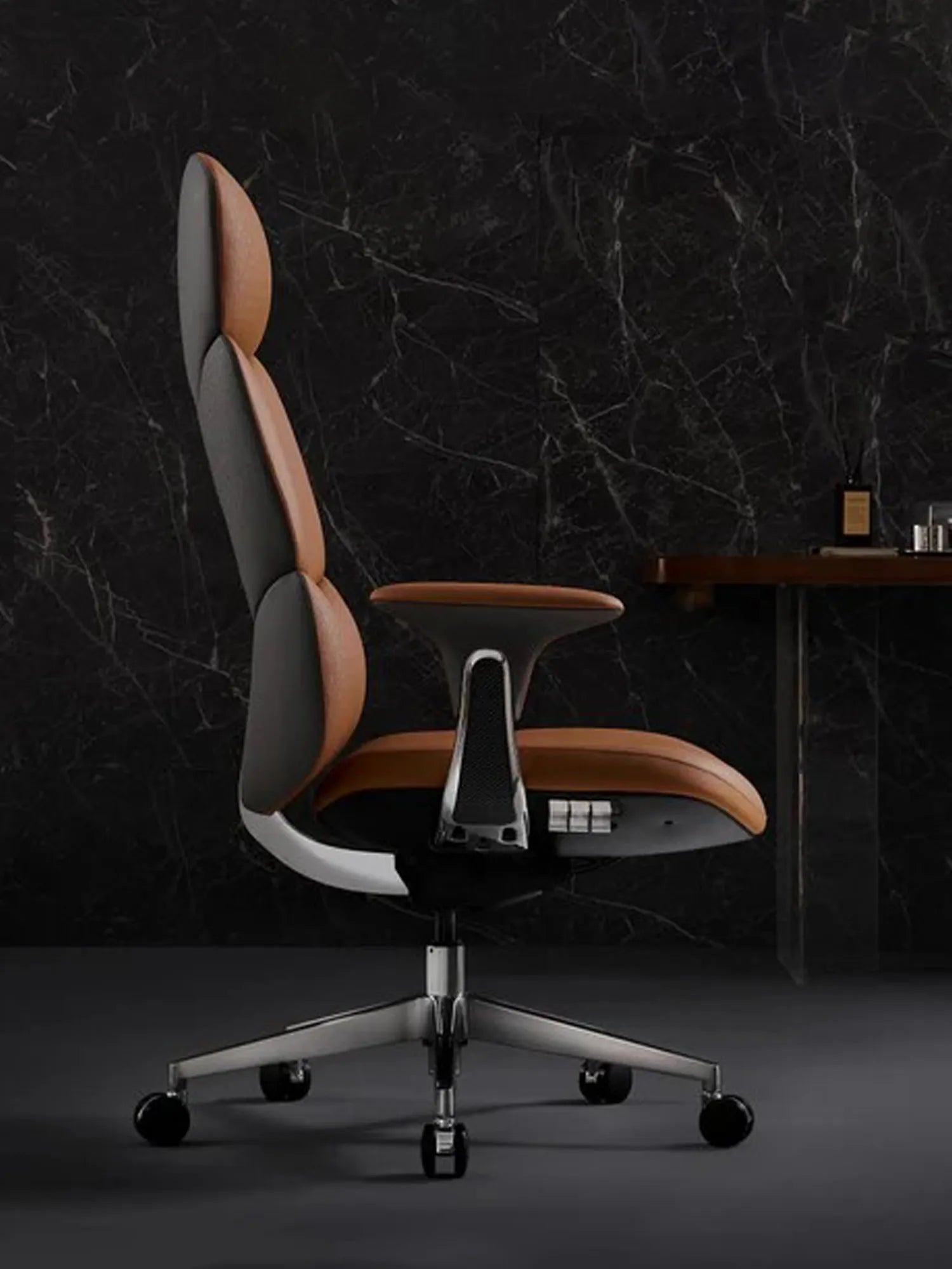 The high-back chair can be rotated 360 degrees, adjusted for sitting height, sitting depth, tilted the back synchronously, and locked tilt angle steplessly, adjusted for tilt force.