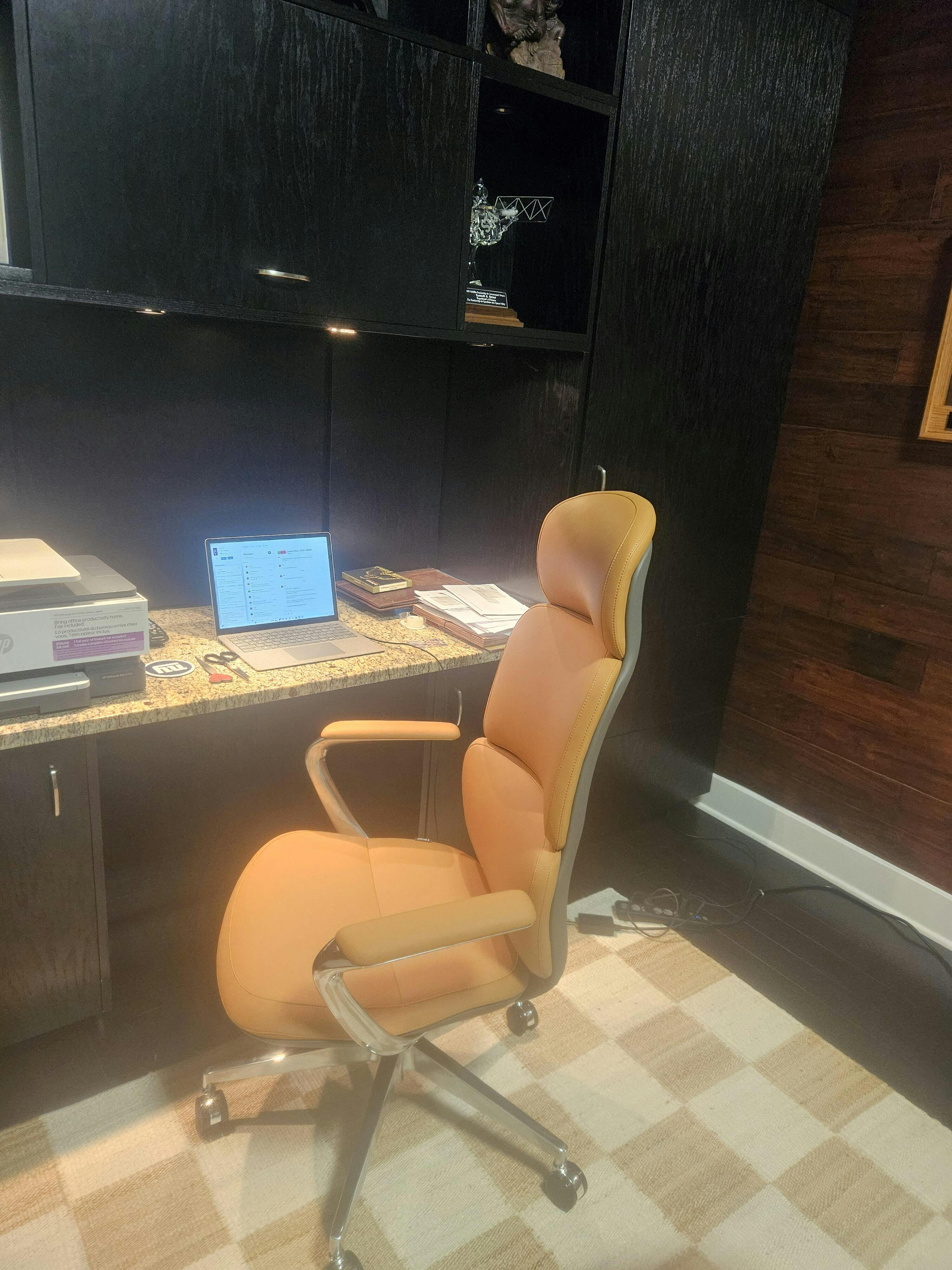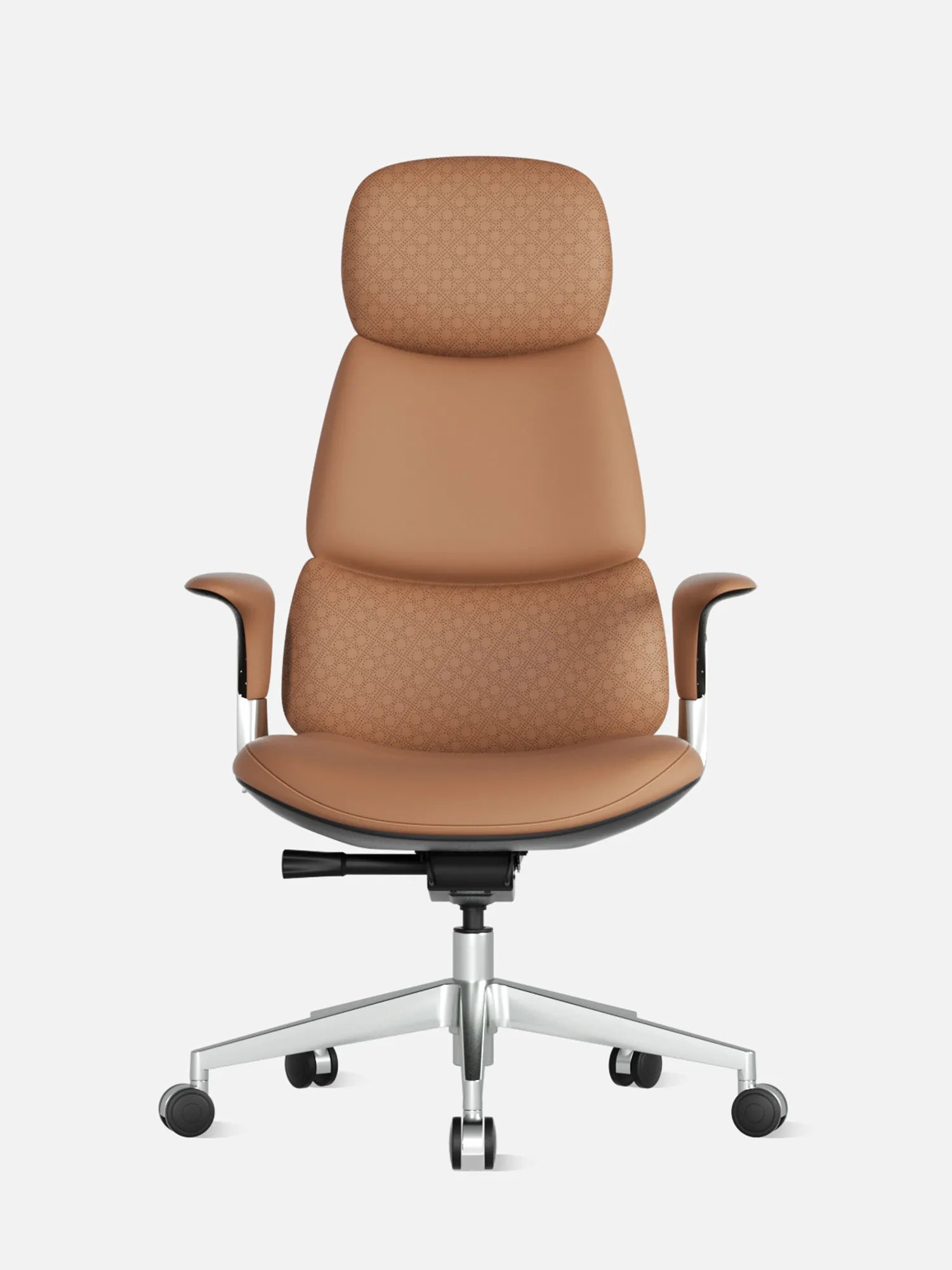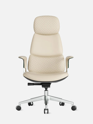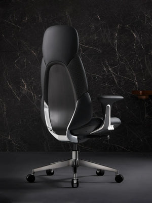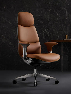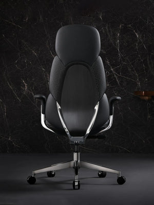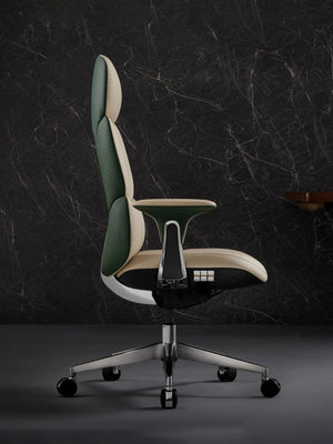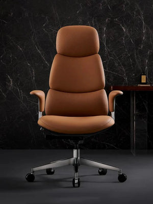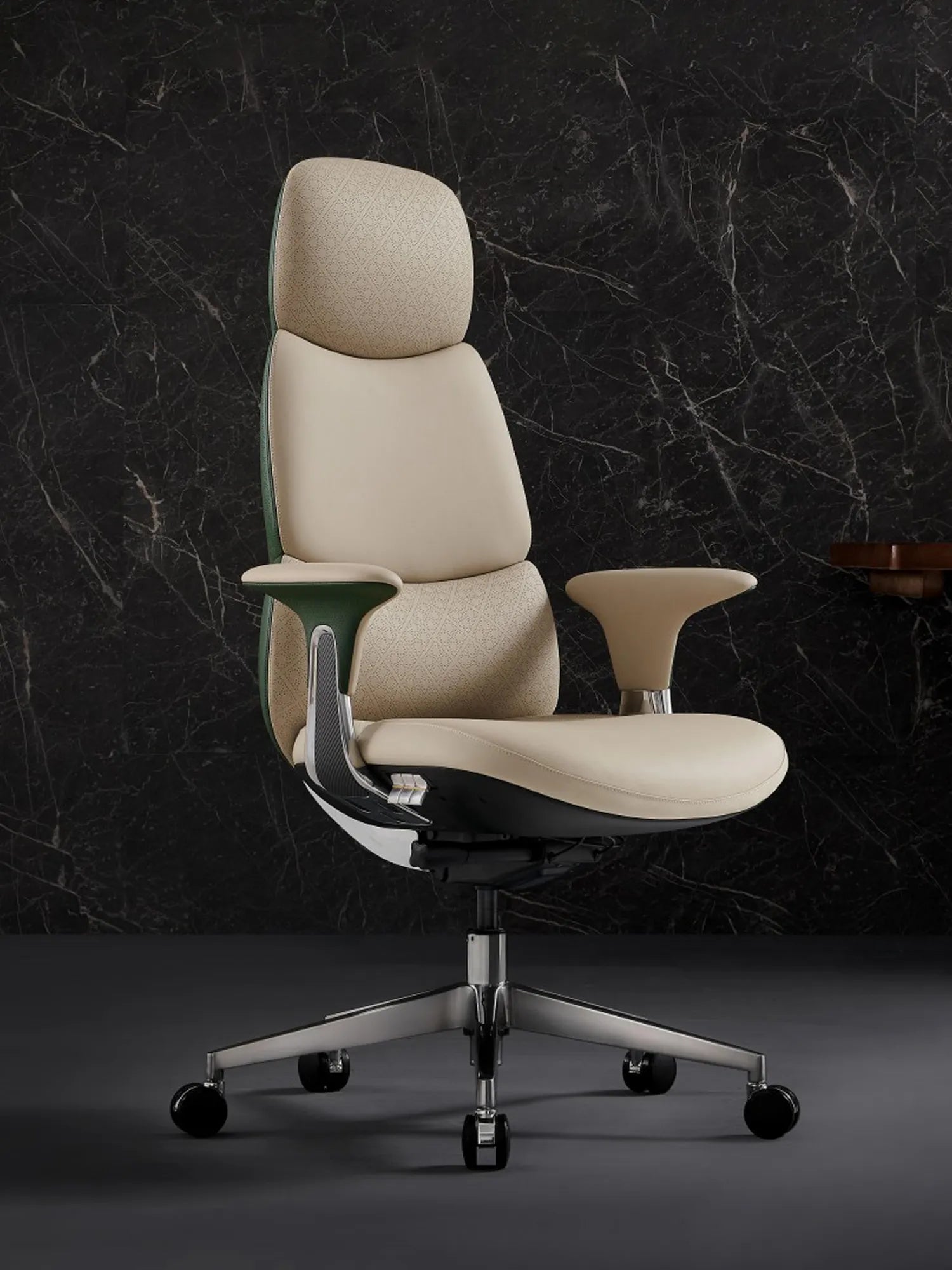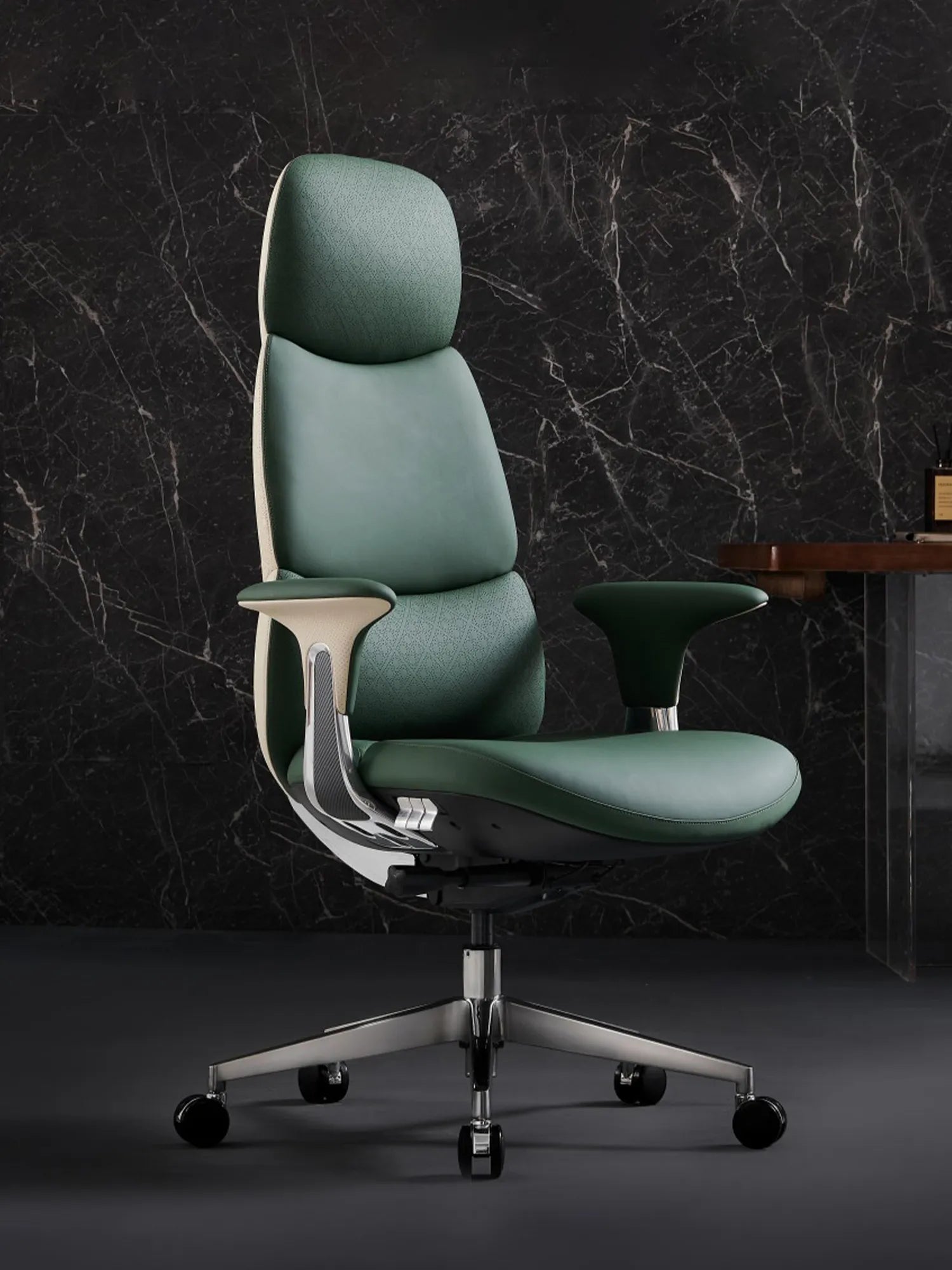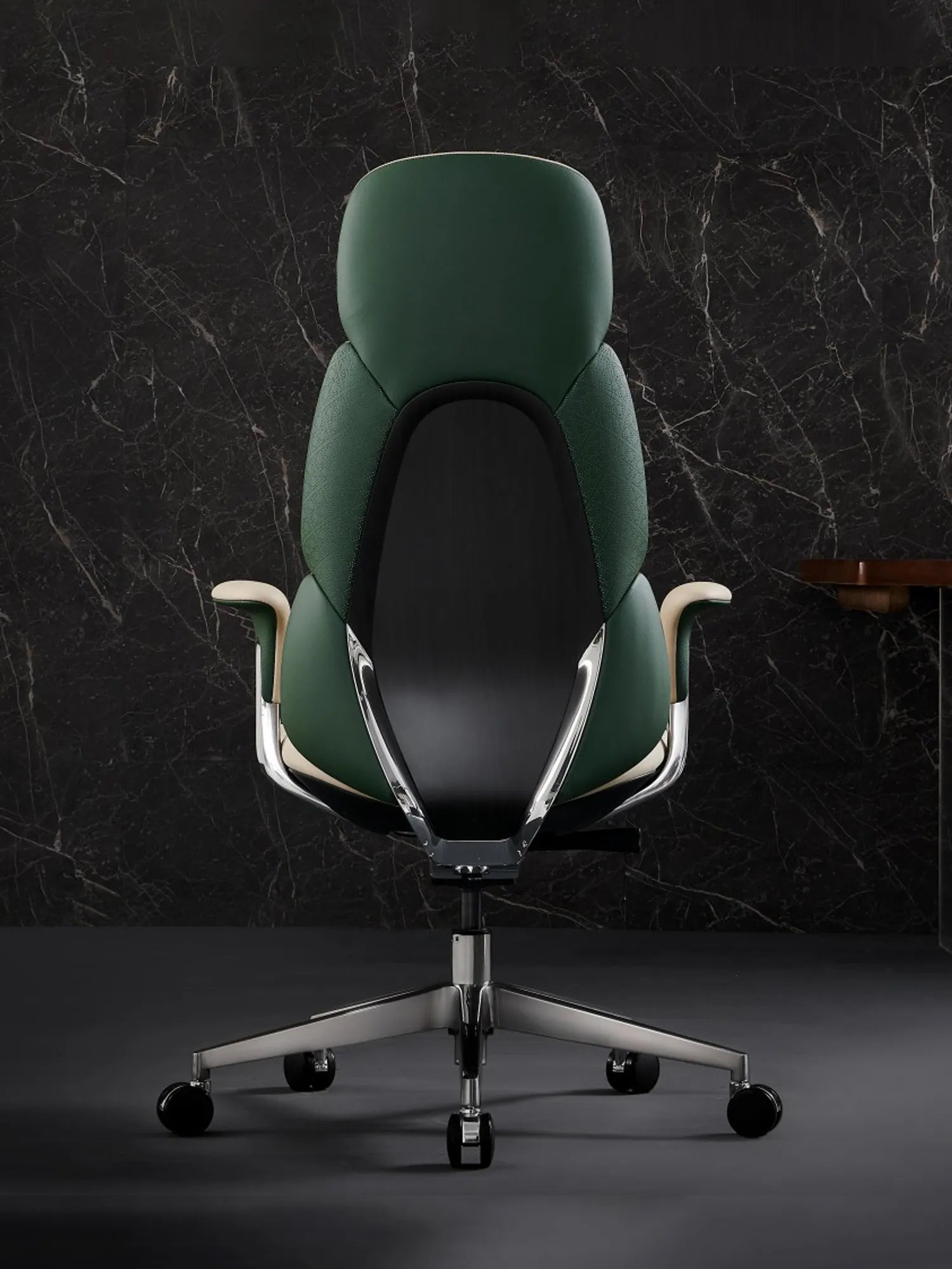The high-back chair can be rotated 360 degrees, adjusted for sitting height, sitting depth, tilted the back synchronously, and locked tilt angle steplessly, adjusted for tilt force.